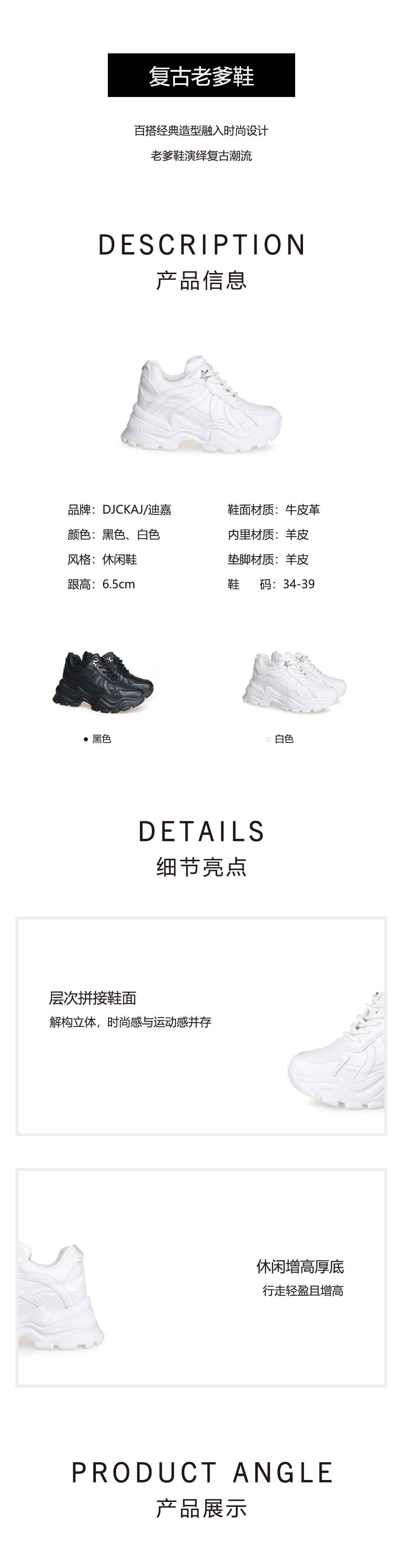 豪麟名鞋迪嘉女鞋时尚老爹鞋牛皮革DJJGA52WX009白色