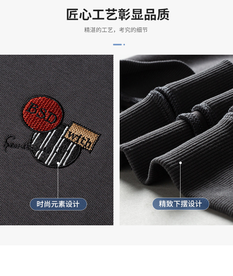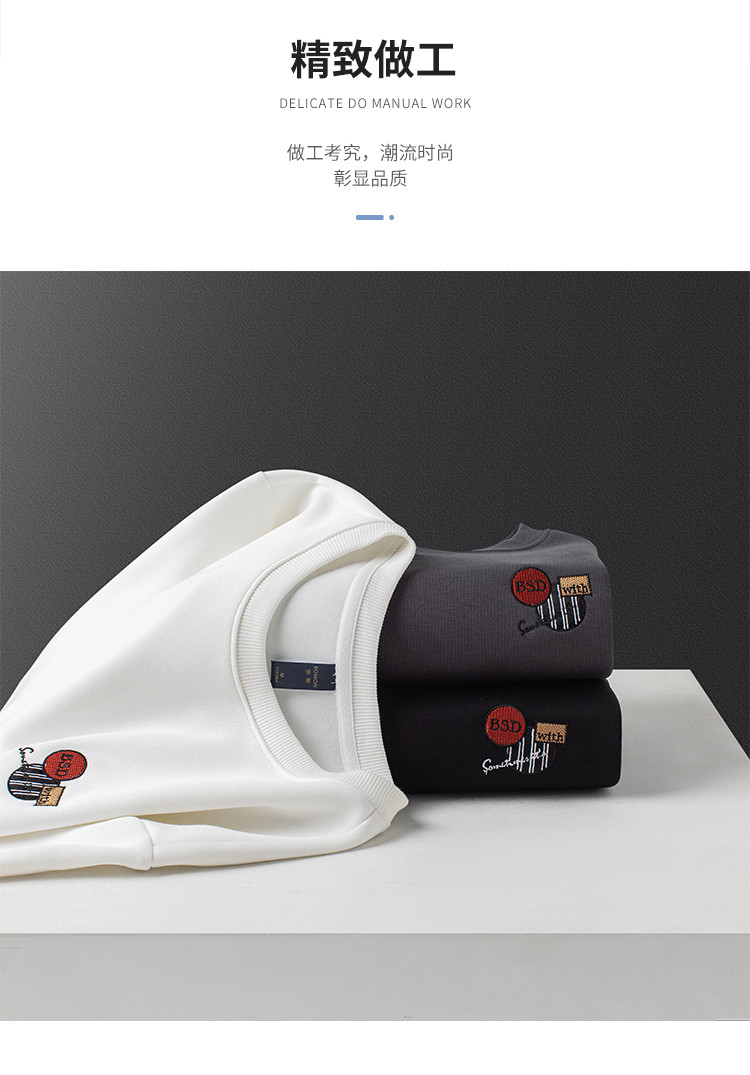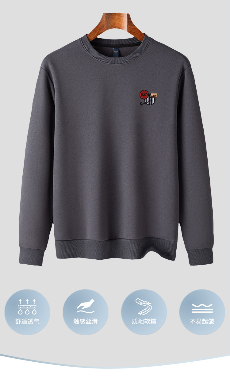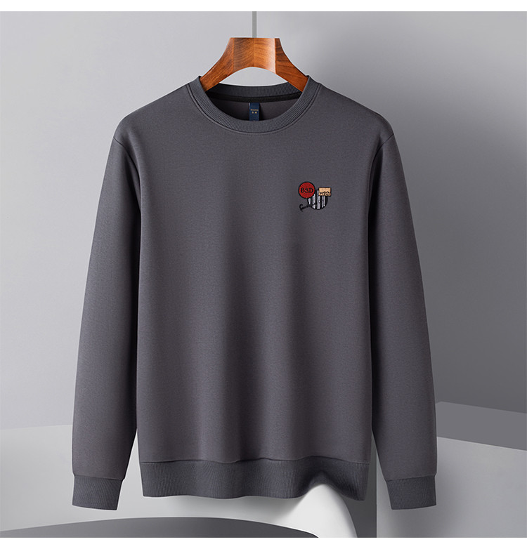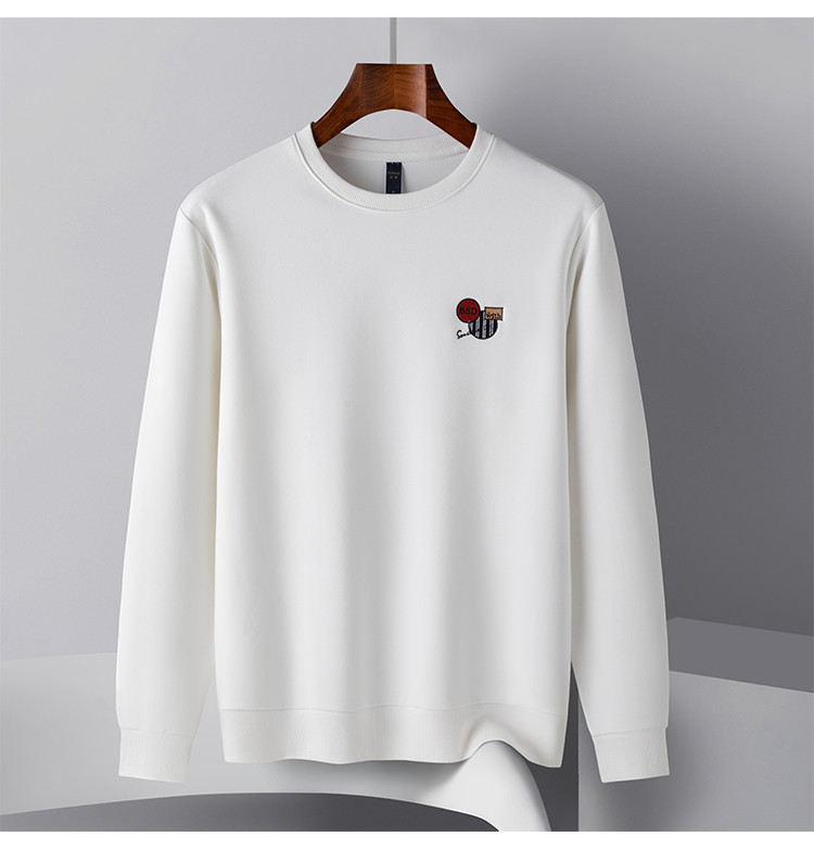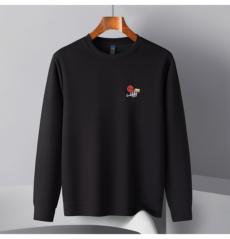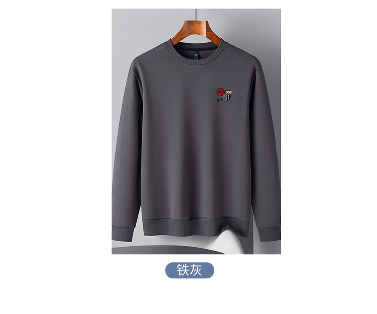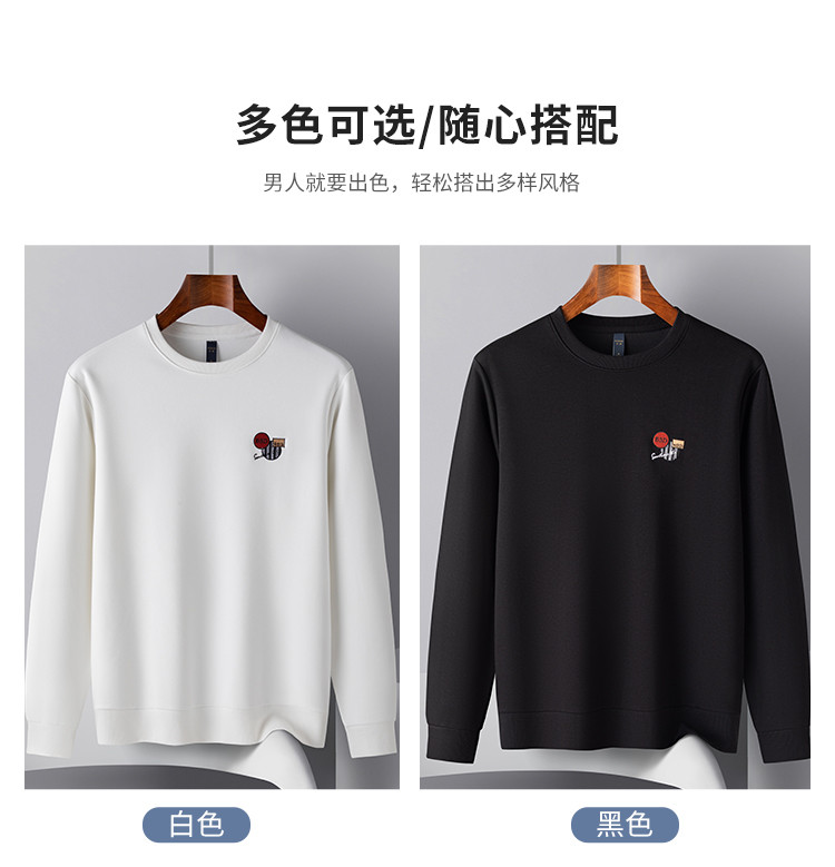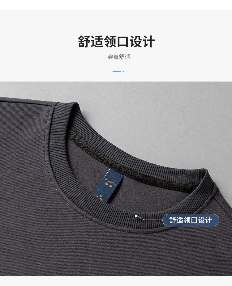 【桑蚕丝混纺】罗蒙春秋男装绣花胸标卫衣男士舒适休闲百搭卫衣圆领长袖T恤上衣男
