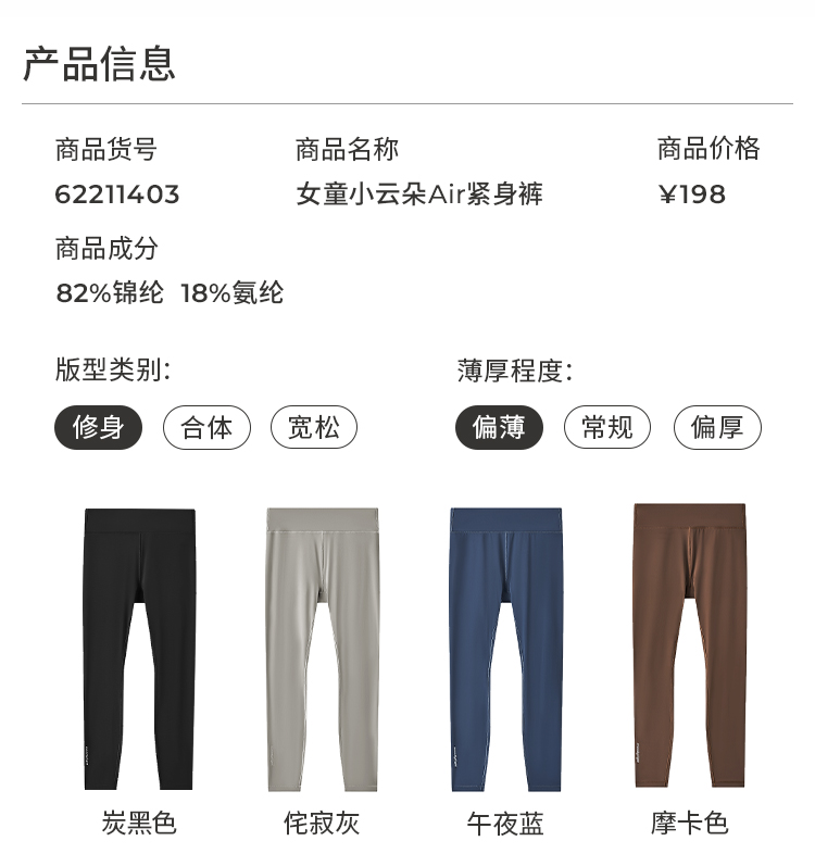 小云朵Air春夏款印花纯色休闲透气舒适紧身裤62211403