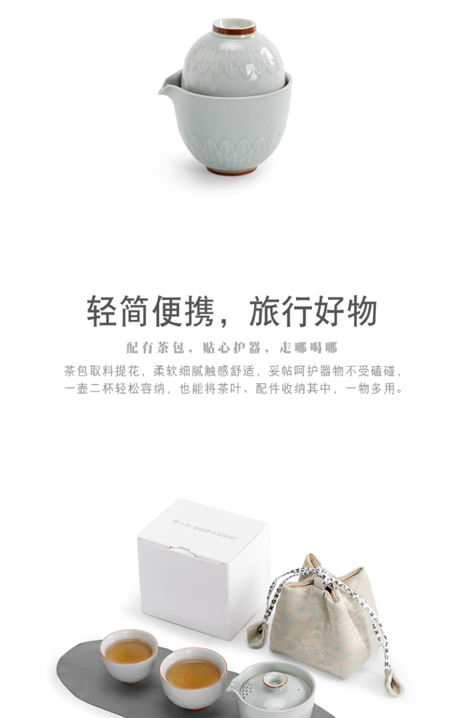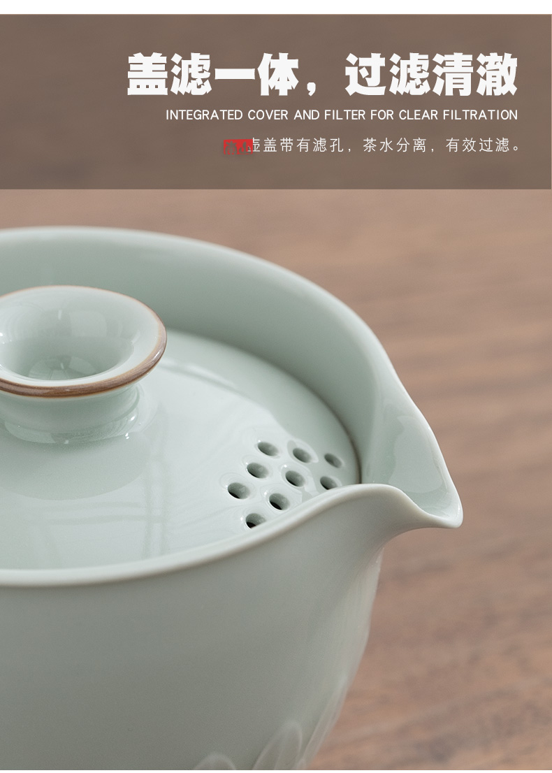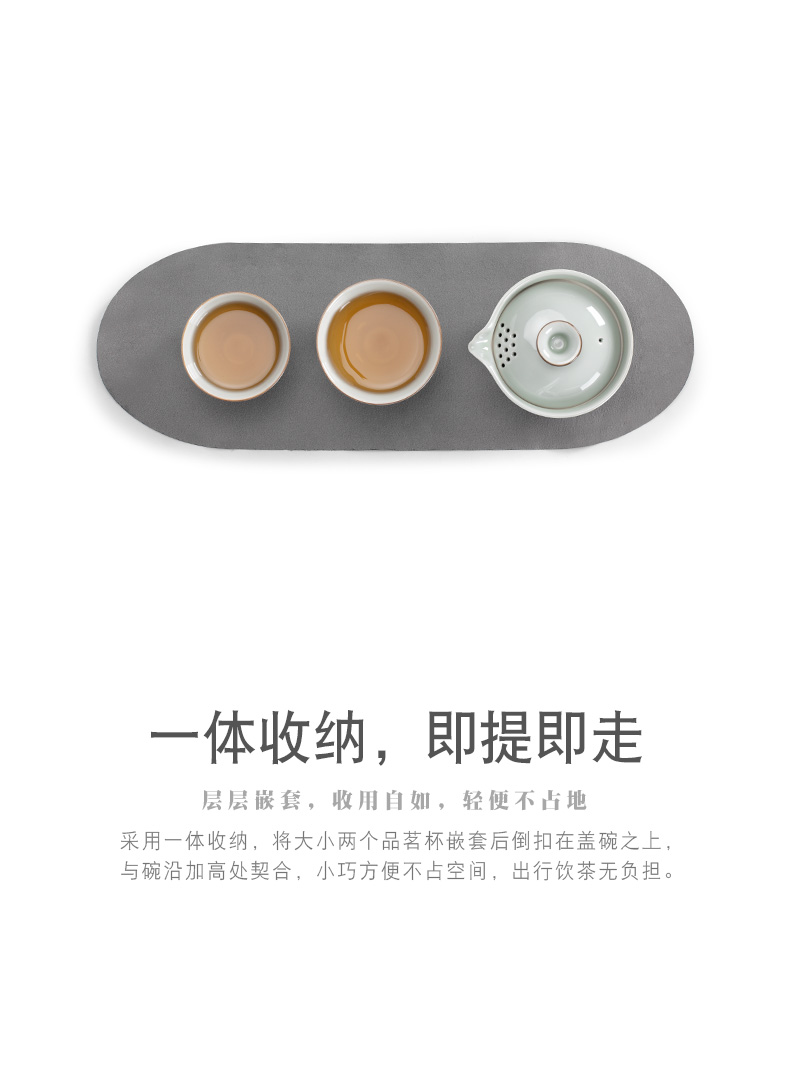 千里江山 6头+木托盘 茶具套装 手绘羊脂玉新款整套功夫茶具家用德化白瓷客厅泡茶办公室会客盖碗茶杯 茶道 茶具