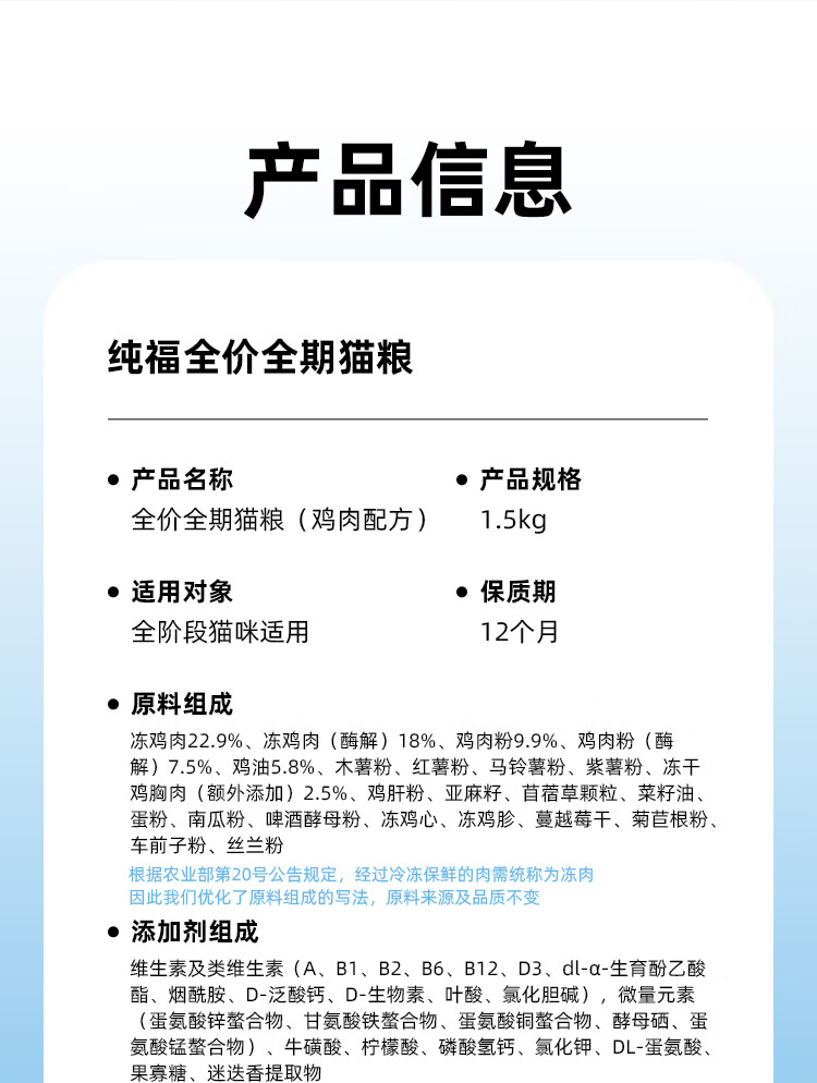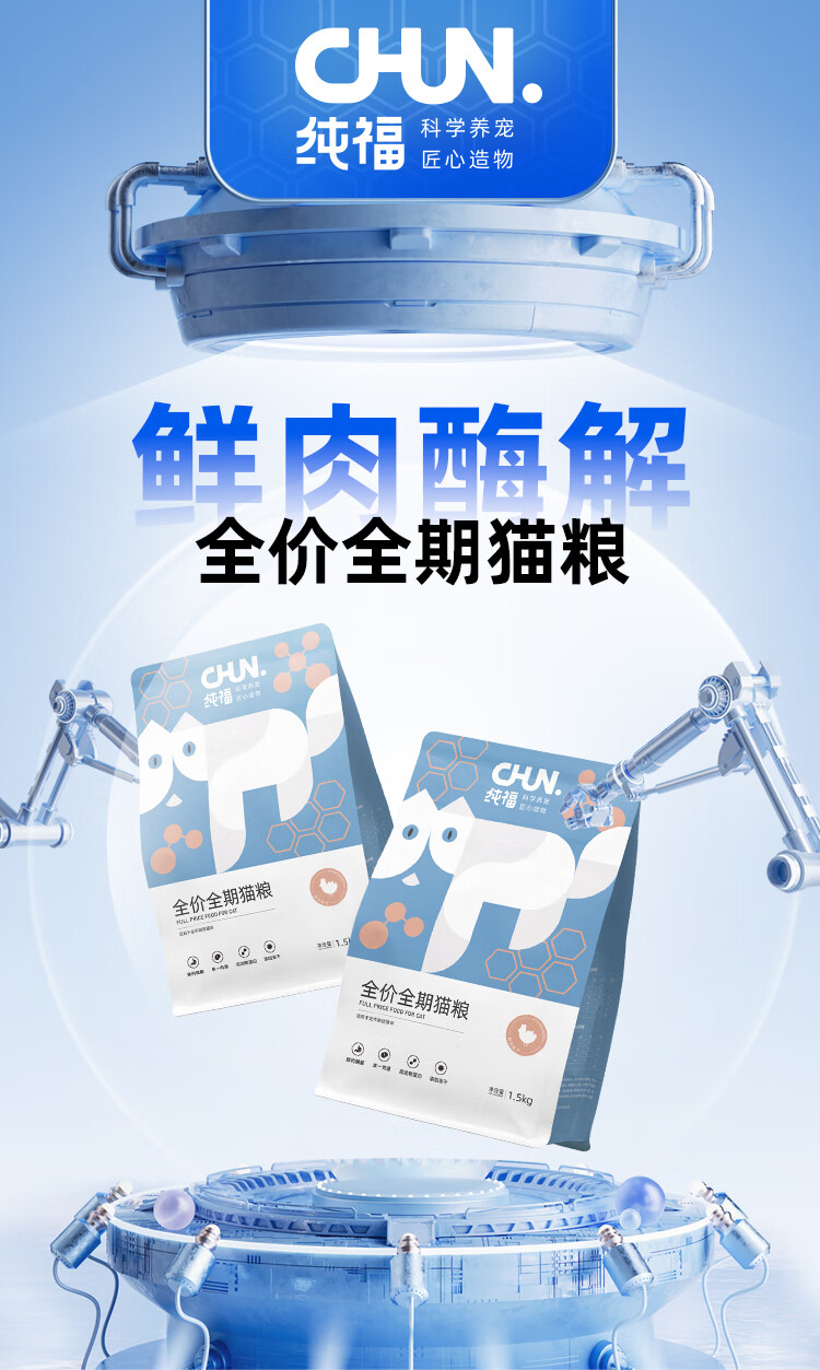 纯福猫粮酶解鸡肉成幼猫全阶段无谷猫粮1.5KG/1袋