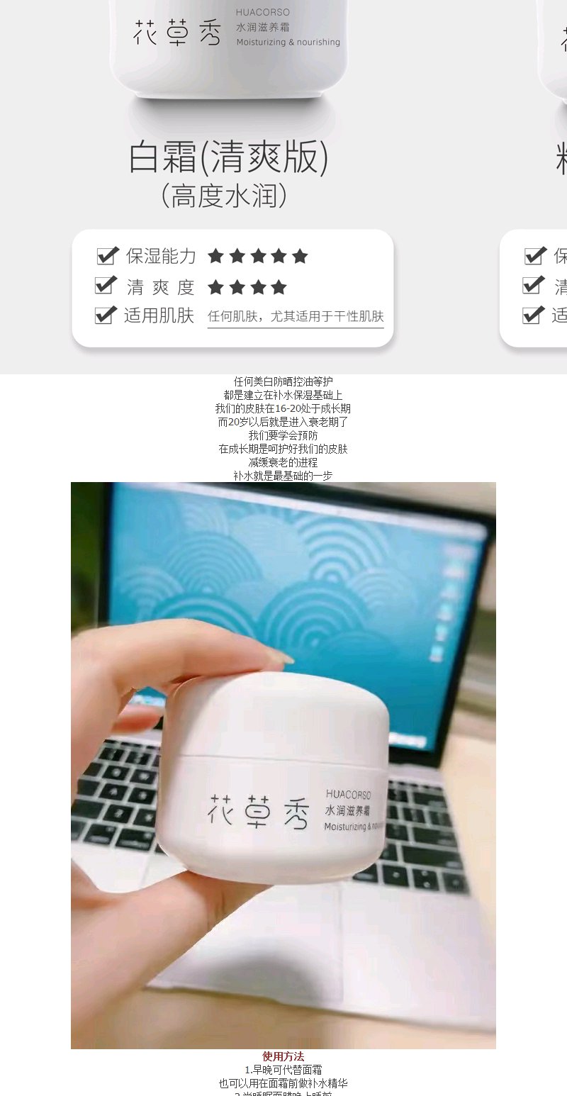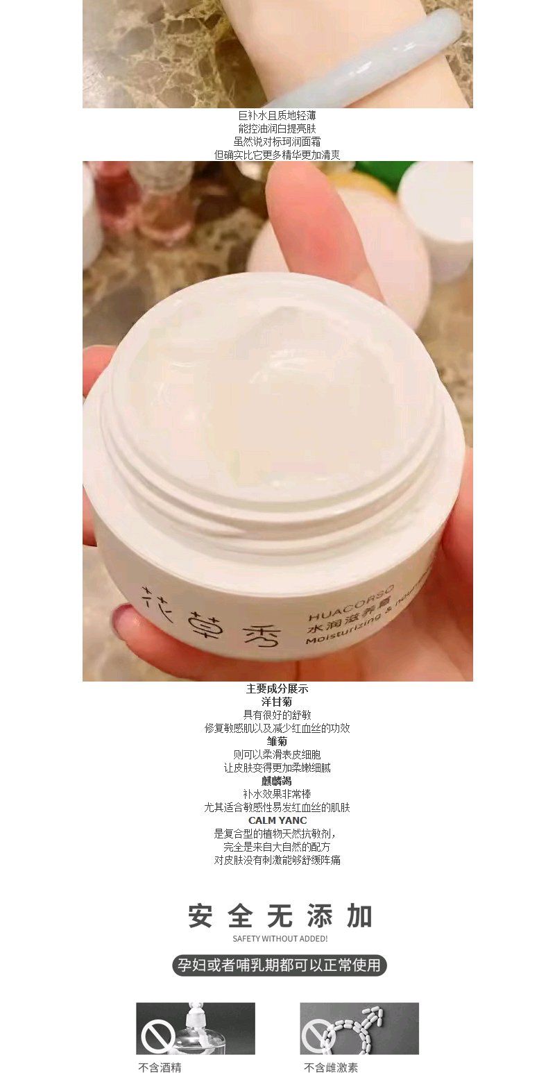 【滋润补水】花草秀水润滋养霜50g一推化水深层补水针对不同肤质温和配方不刺激