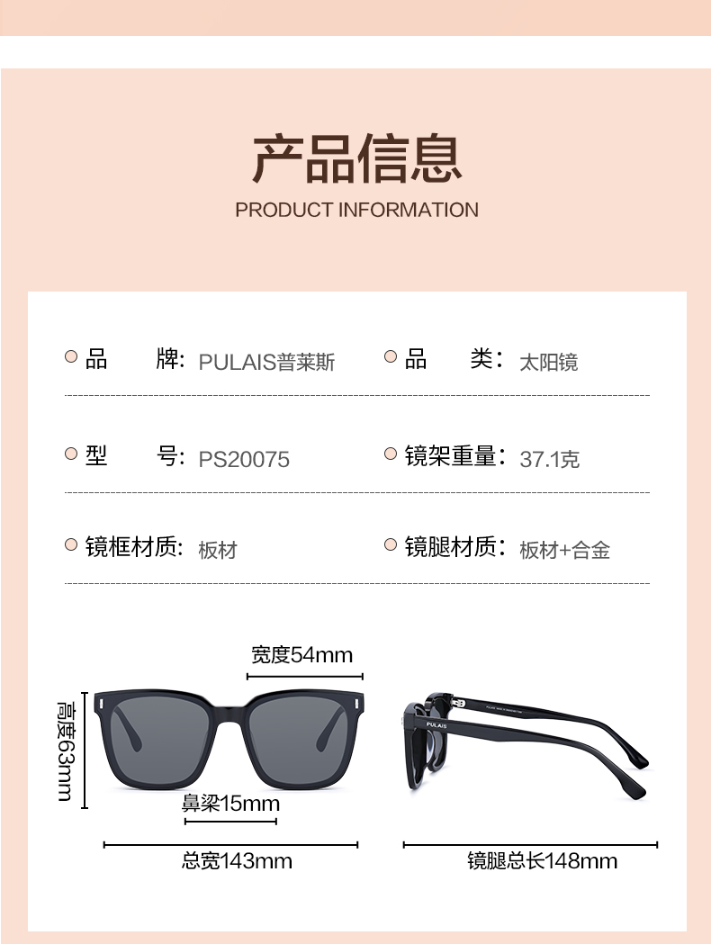 普莱斯PS30011太阳镜 修颜百搭风格 高清尼龙镜片 板材+合金材质 男女通用 三色可用