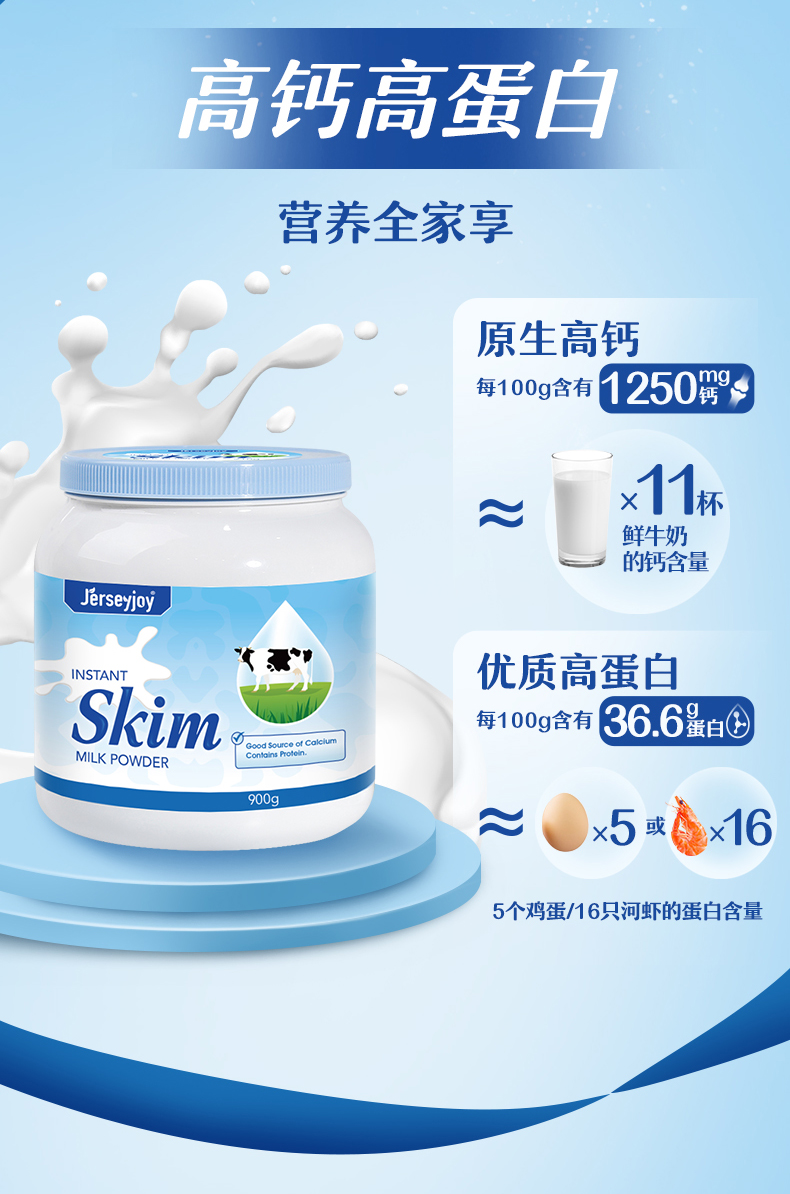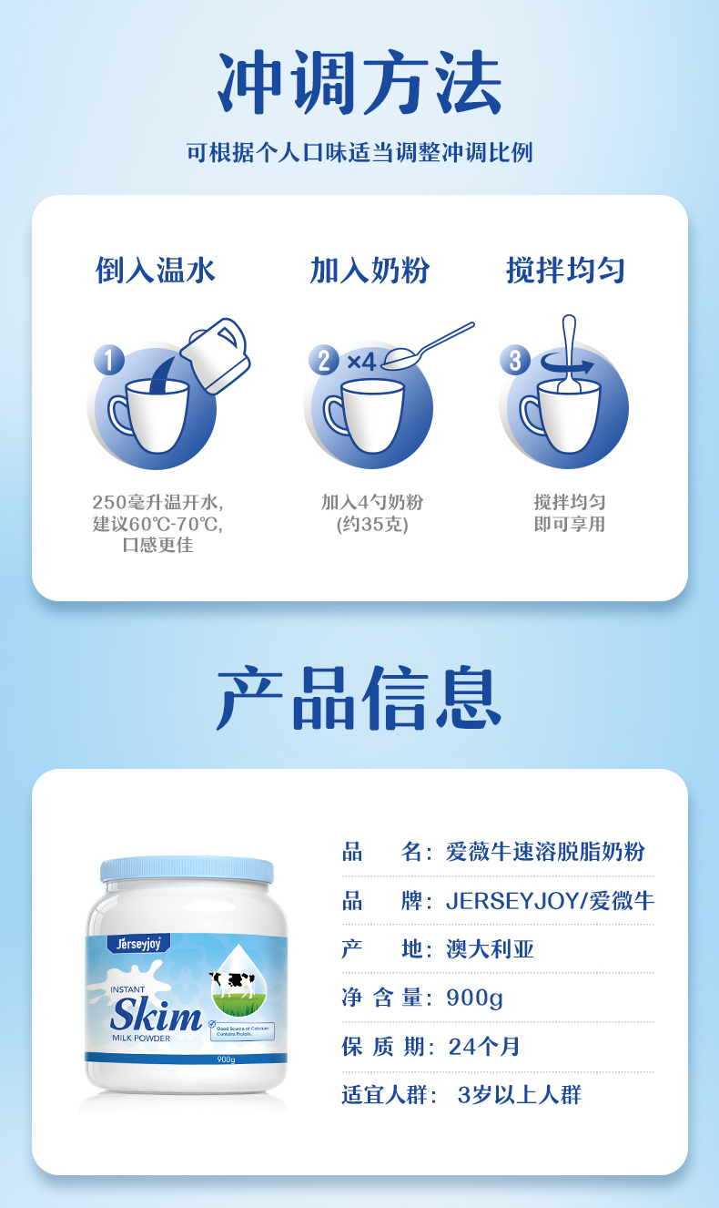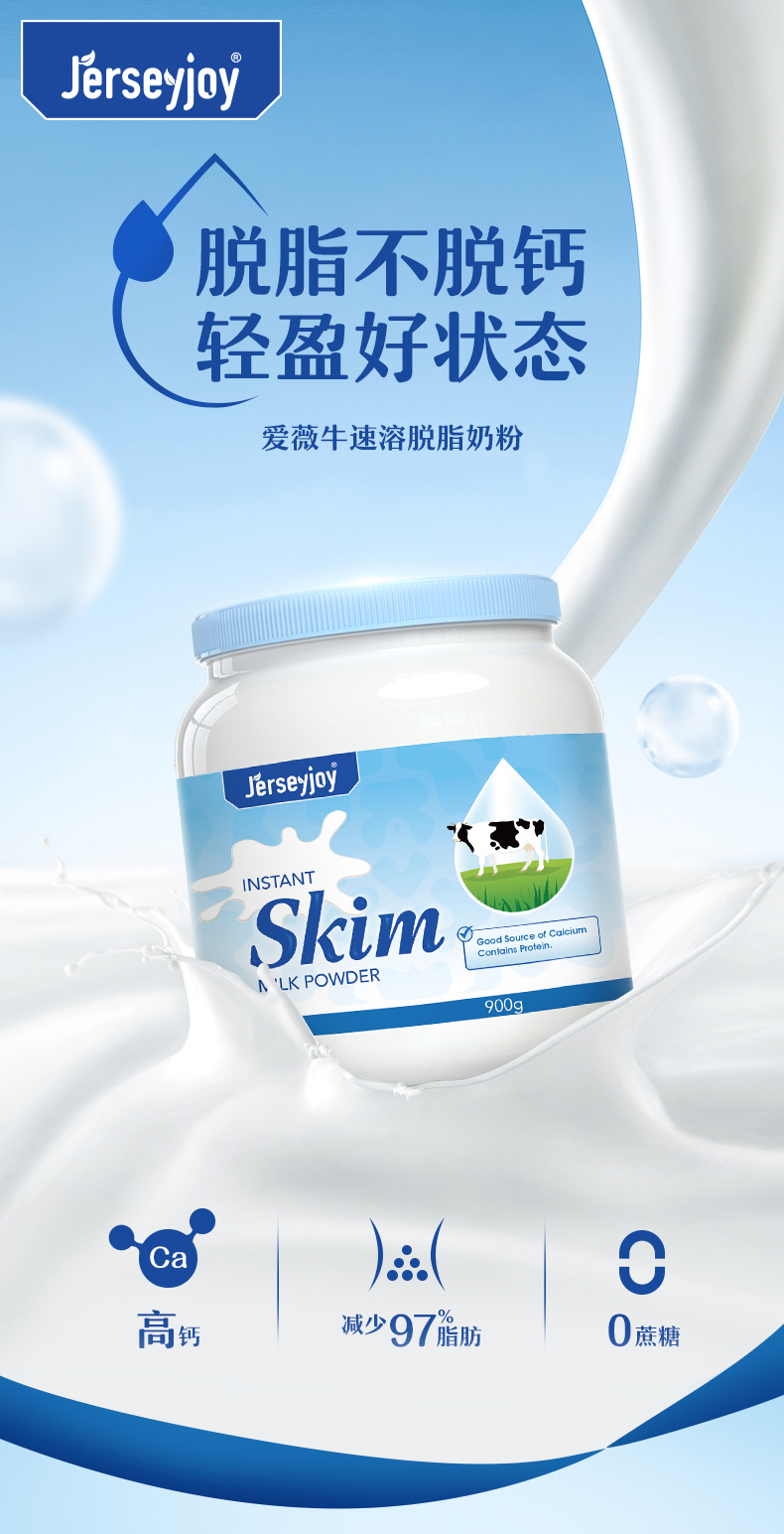 【保税仓】澳大利亚Jerseyjoy 爱薇牛速溶脱脂奶粉(定制) 900g*1 (有效期至26年4月)
