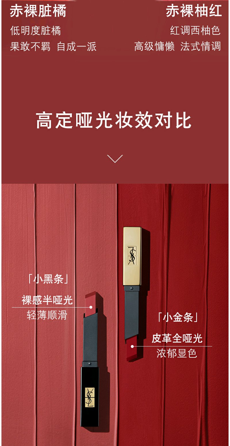 YSL圣罗兰新品小黑条口红 裸感哑光302豆沙色301奶茶 305色日常持久 1966红棕色 314冷茶色
