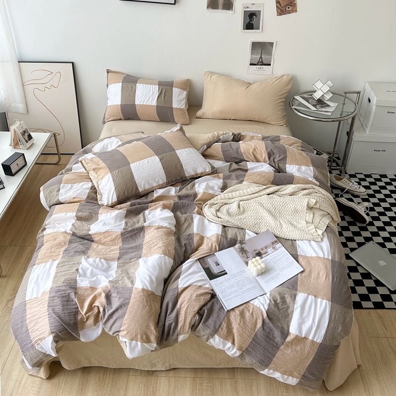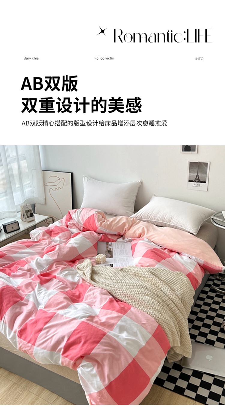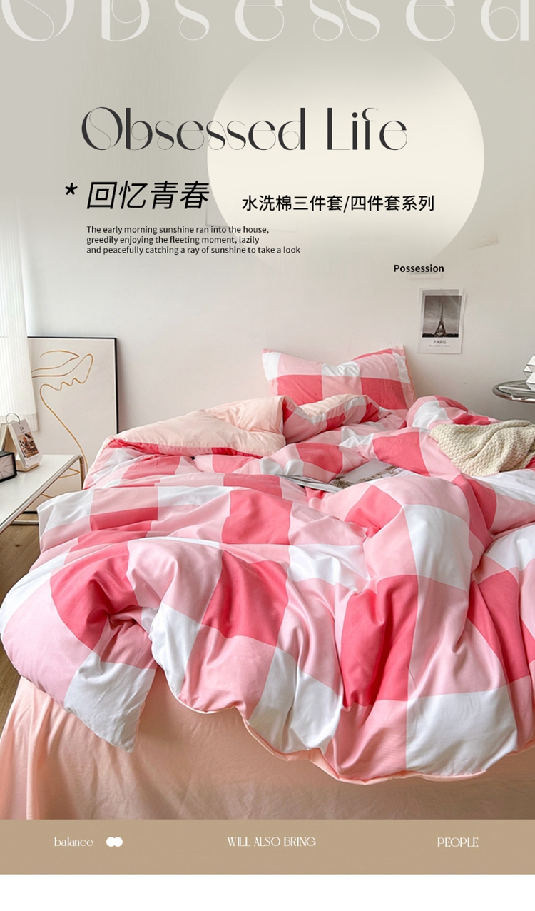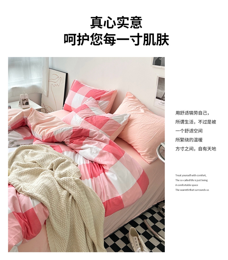 极简爱J.LOVE 2025新款无印风印花水洗棉四件套 床上用品学生宿舍床单