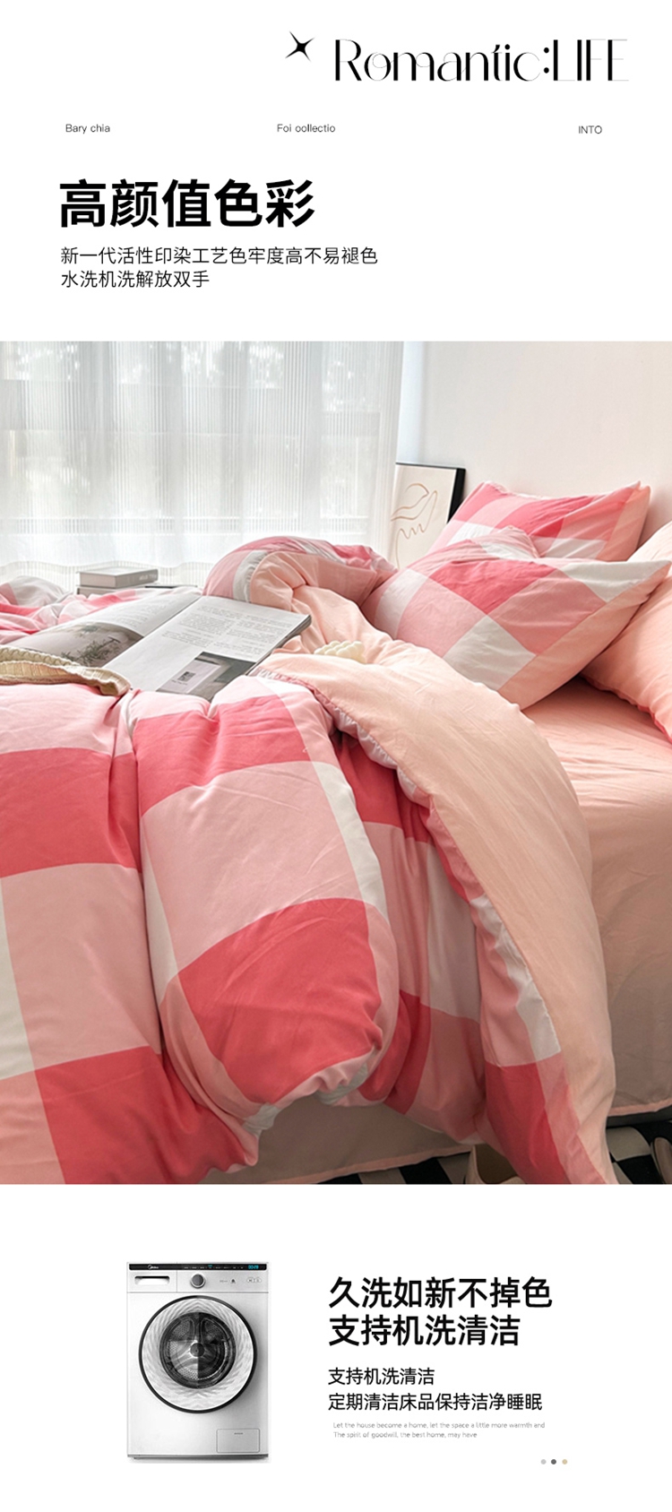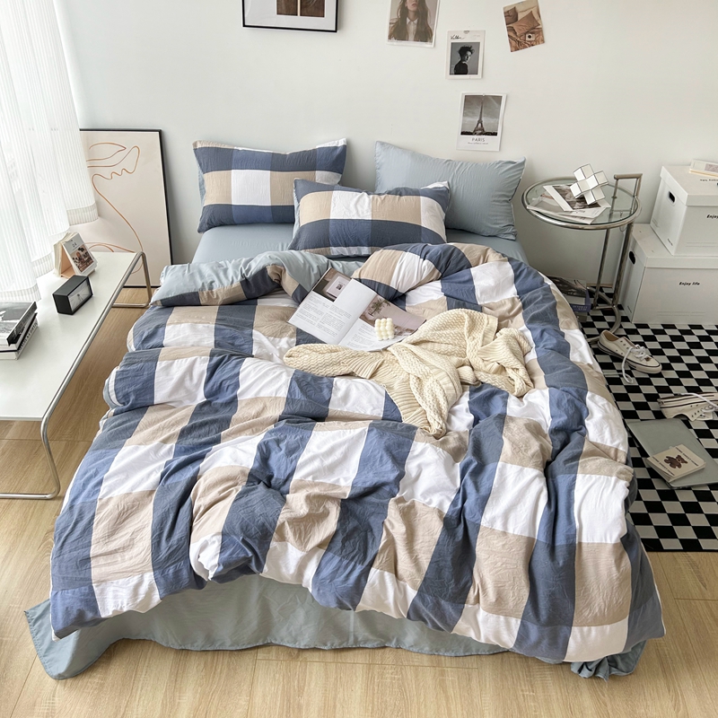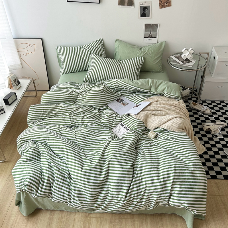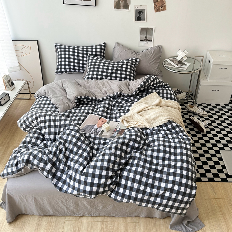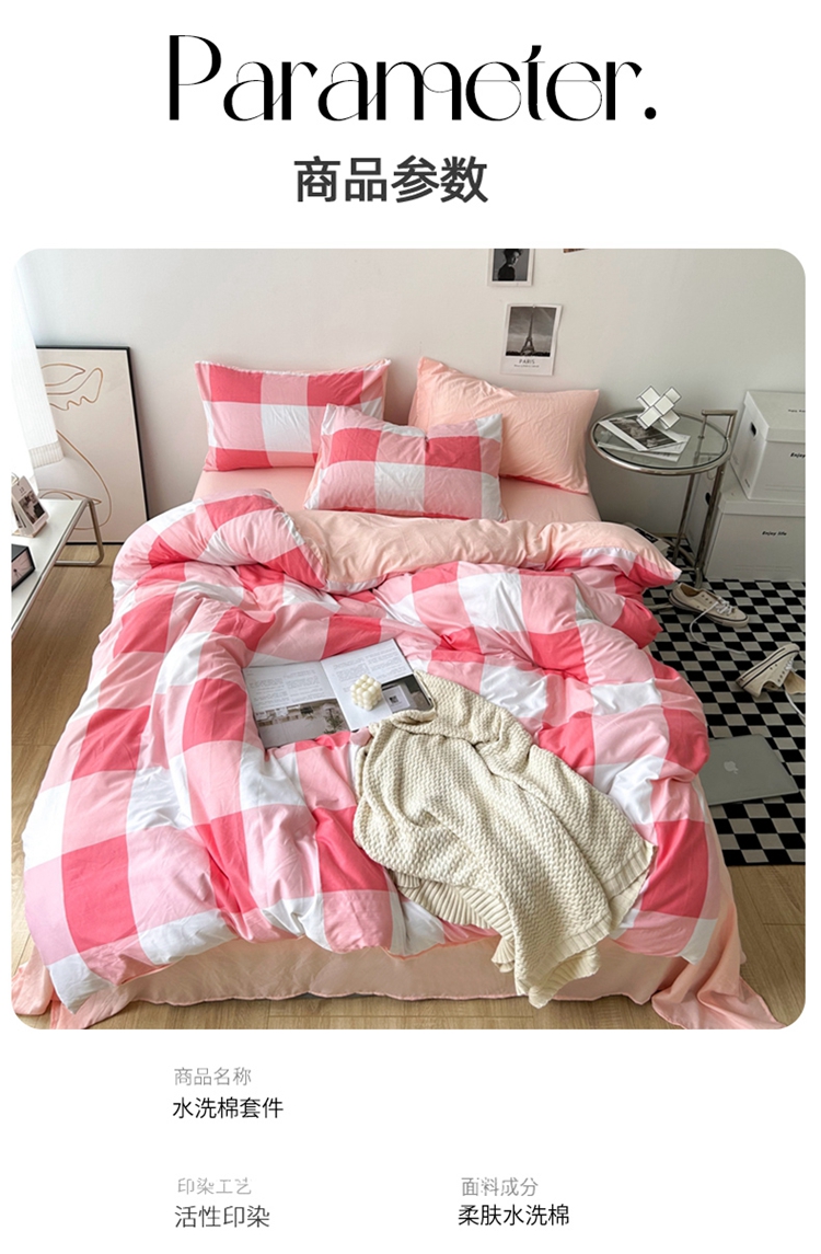 极简爱J.LOVE 2025新款无印风印花水洗棉四件套 床上用品学生宿舍床单
