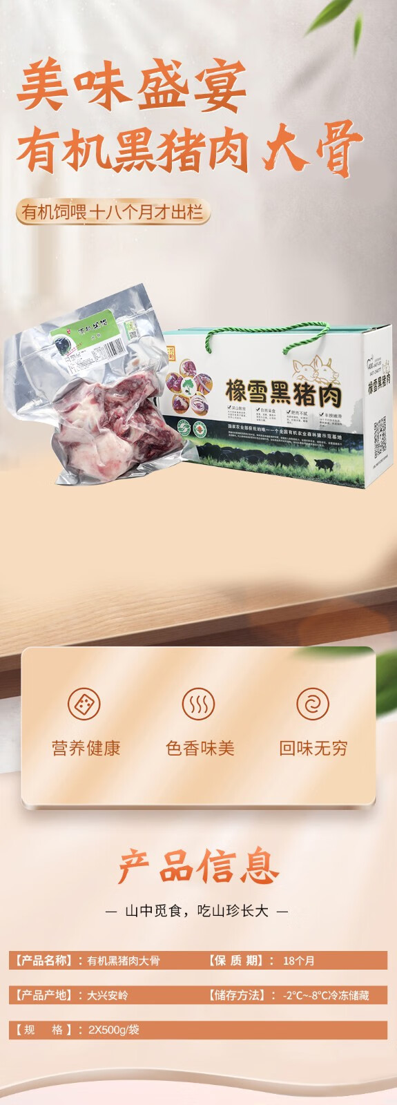 大兴安岭散养黑猪3斤组合(有机大骨500g*2;有机腿肉500g)