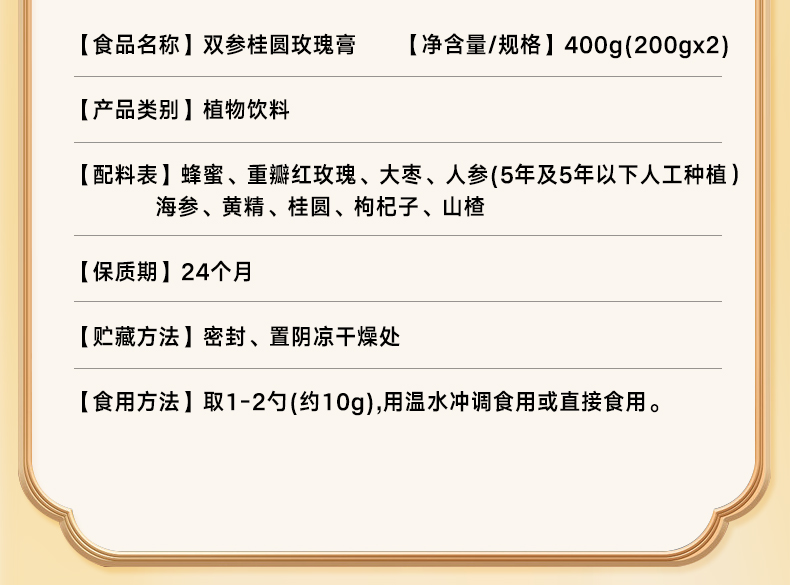 【拍2免1】双参桂圆玫瑰膏200g/瓶*2瓶/盒
