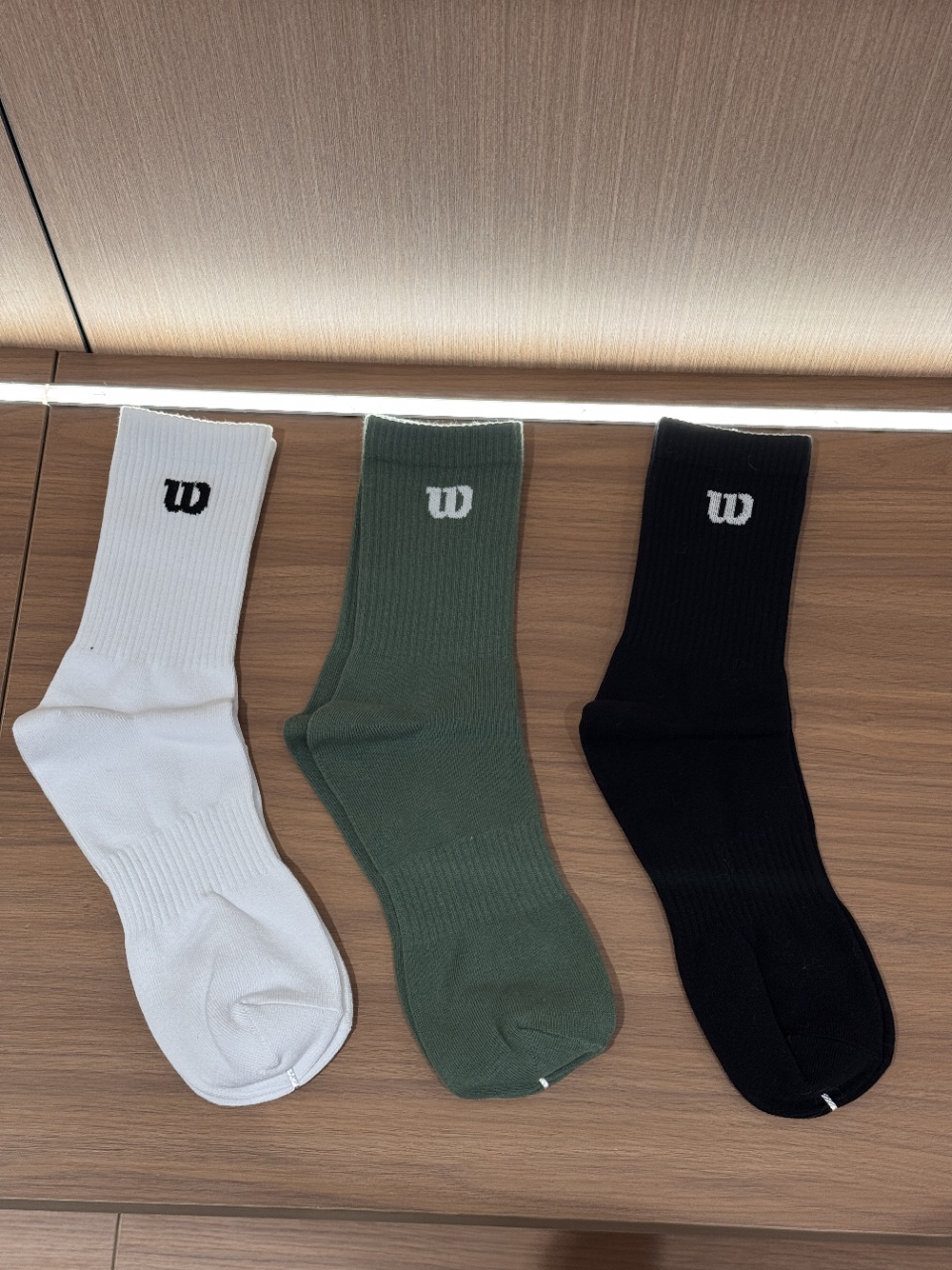 Wilson 中筒袜,黑的硬核、浅绿自带松弛感、白的干干净净 “W” 标一压,运动基因拉满,穿它直接甩开平庸!