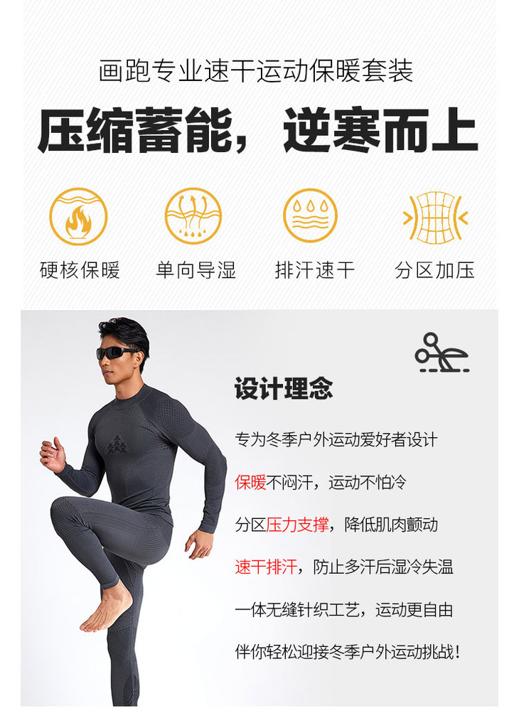 √ 适合-5℃ 至 -10℃跑步穿着,也可日常通勤做打底;