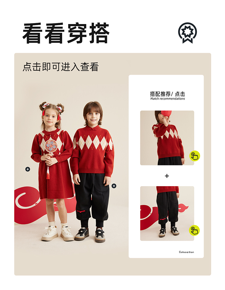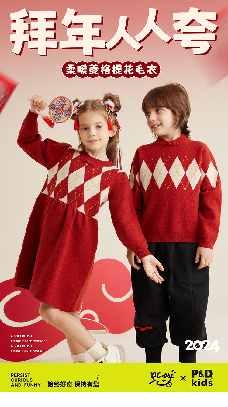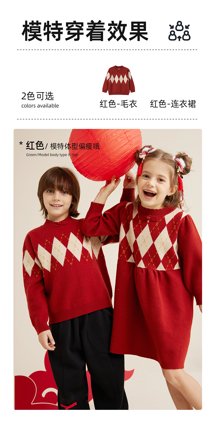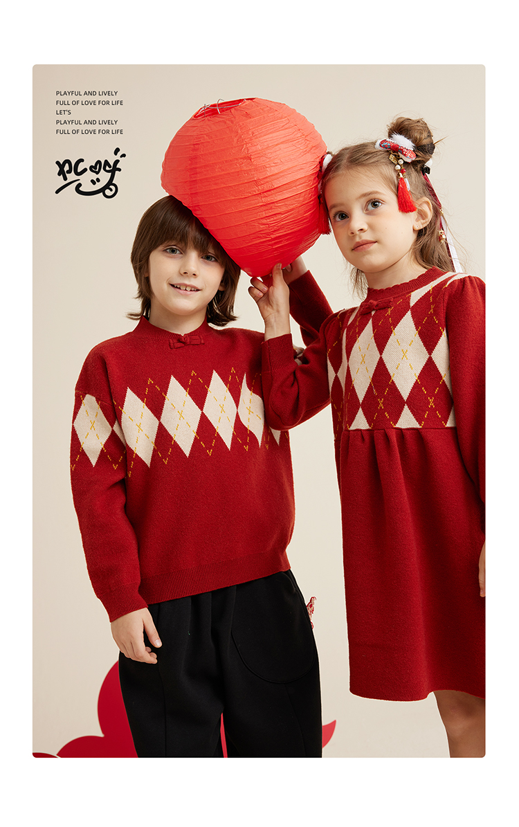 fx-复古新中式新年毛衣 连衣裙兄妹装PDMY2301-PDQ2301
