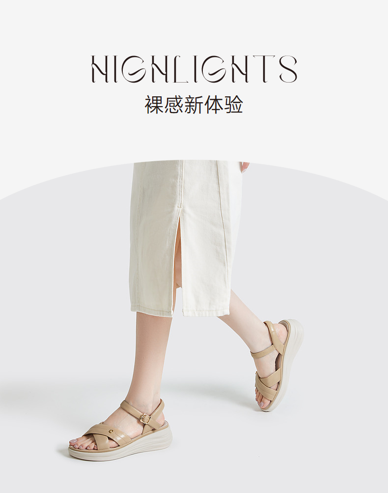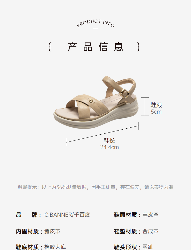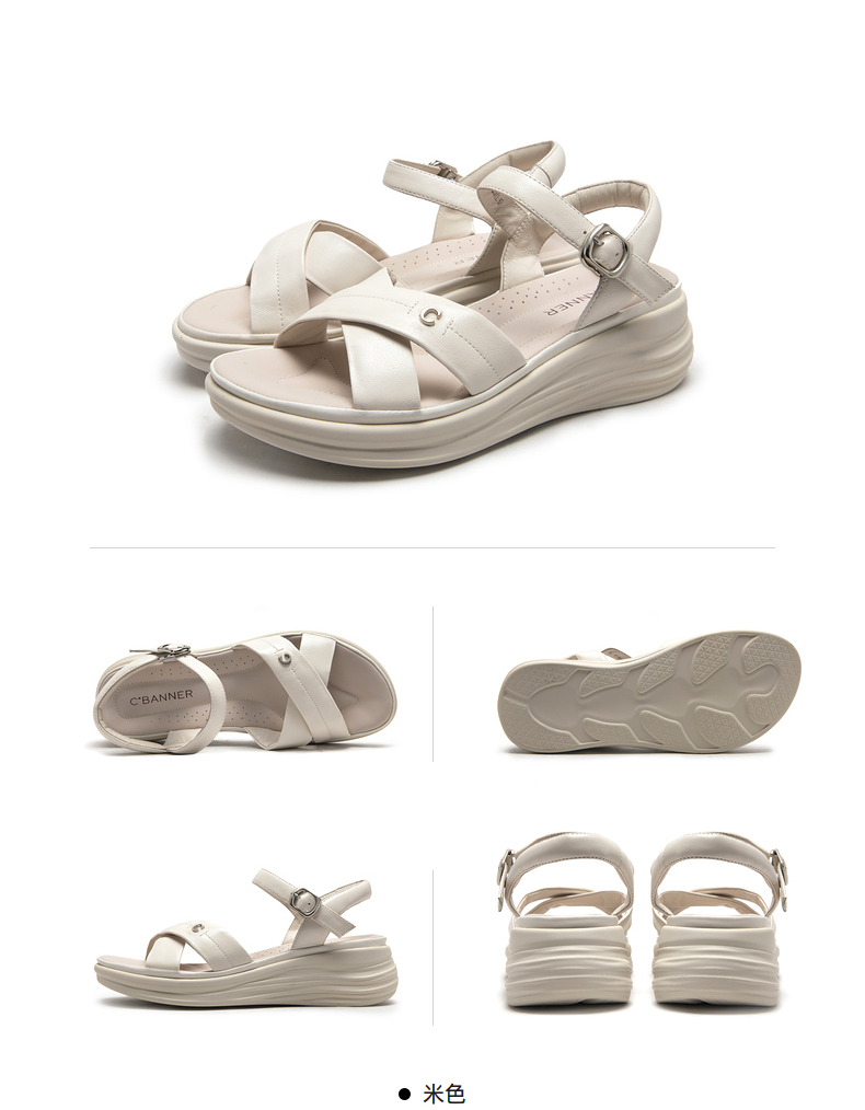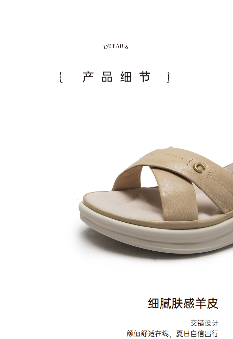 千百度女鞋夏季休闲凉鞋舒软桂花酿坡跟凉鞋踩屎感一字带A23360102