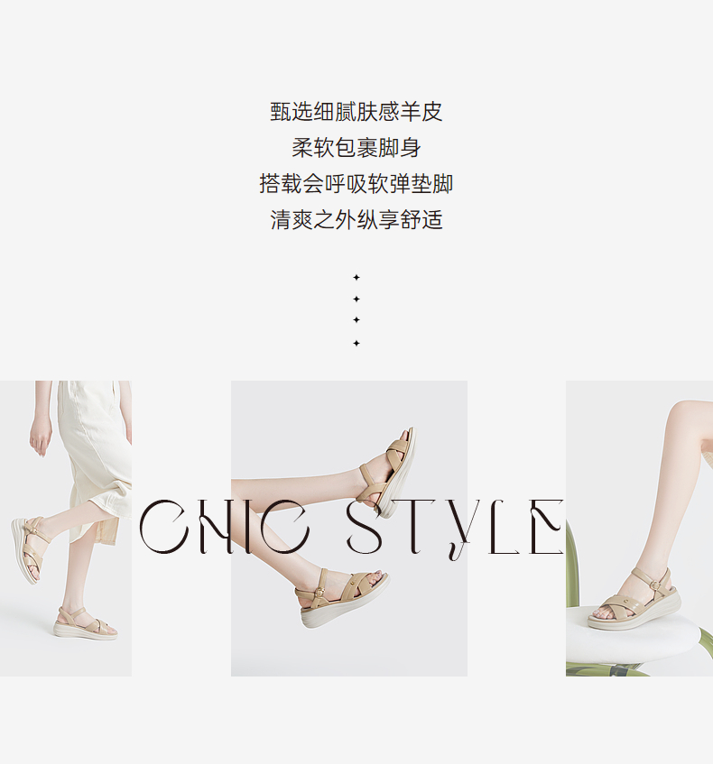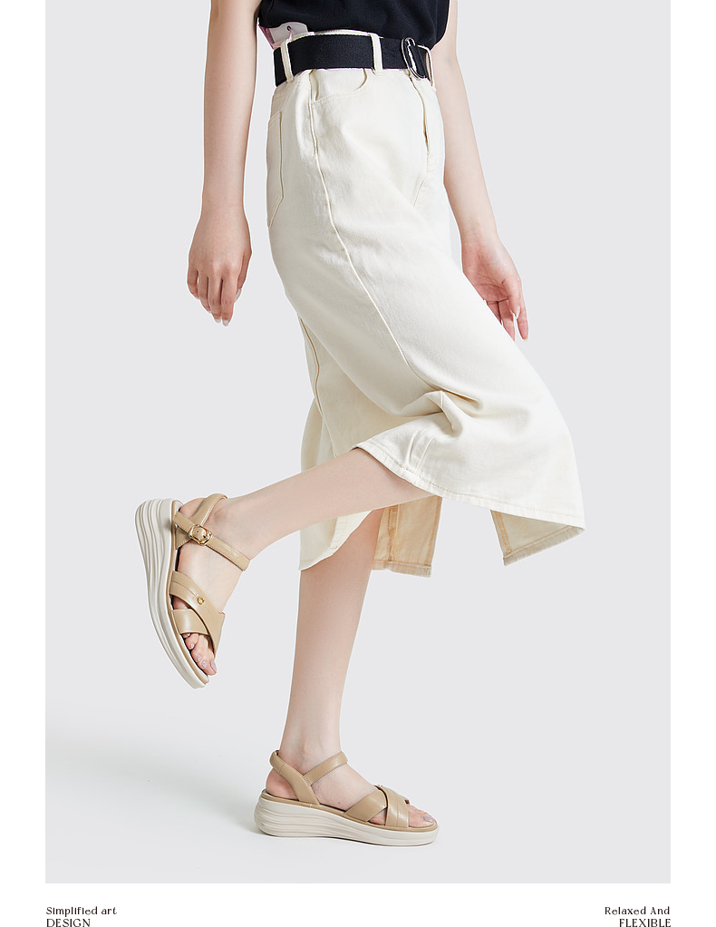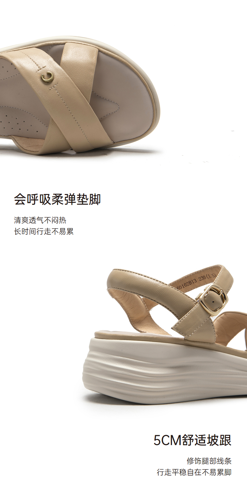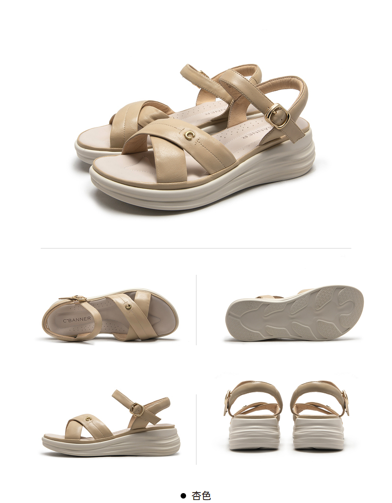 千百度女鞋夏季休闲凉鞋舒软桂花酿坡跟凉鞋踩屎感一字带A23360102