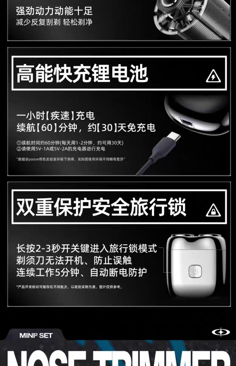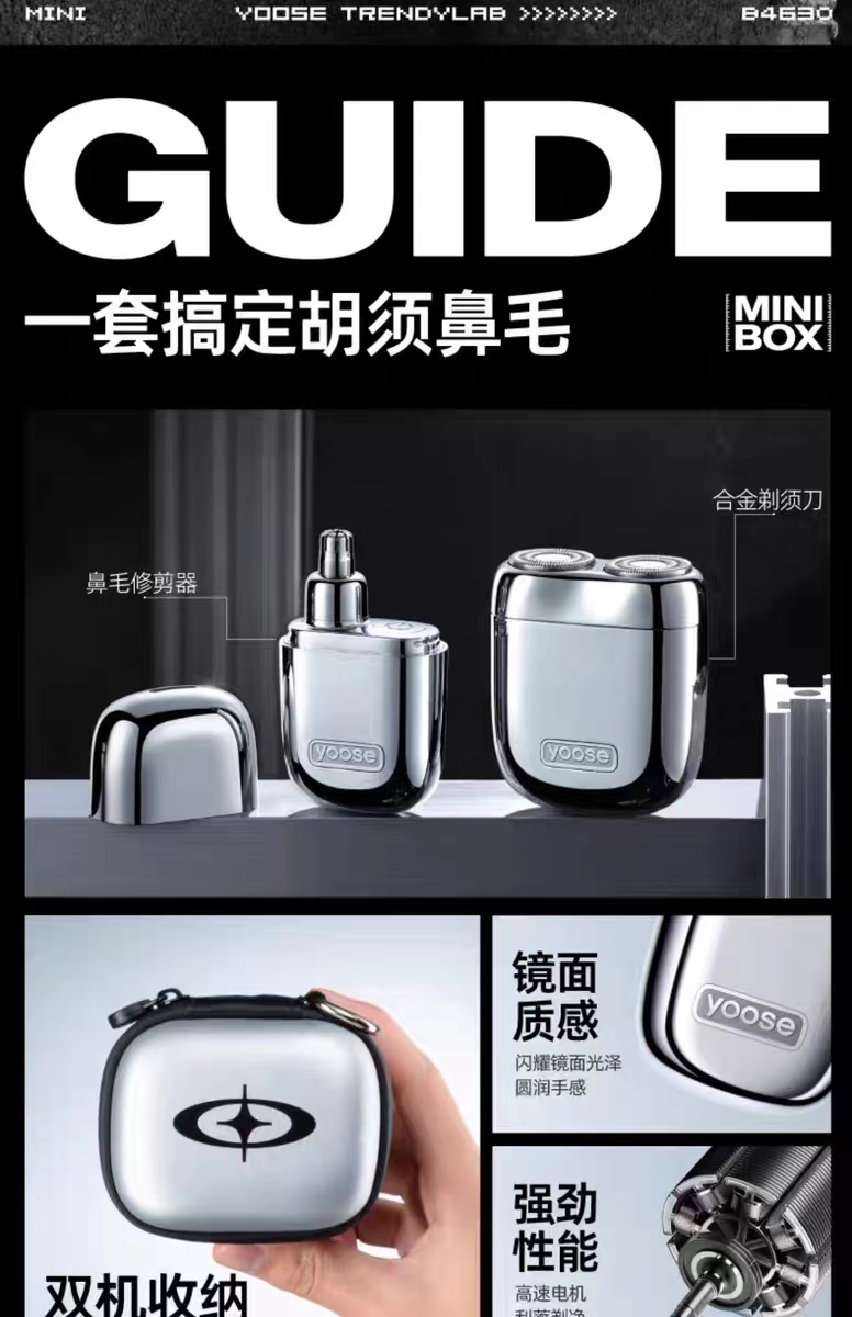 F-YOOSE-09 有色鼻毛修剪器+N1电镀银剃须刀礼盒套装