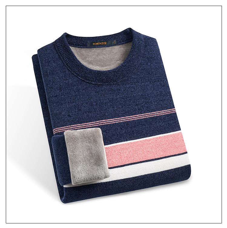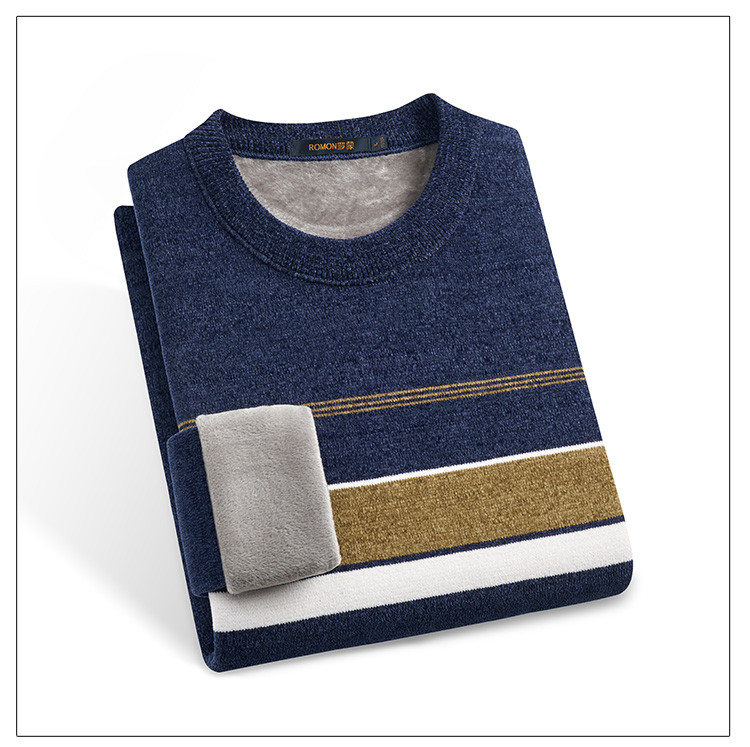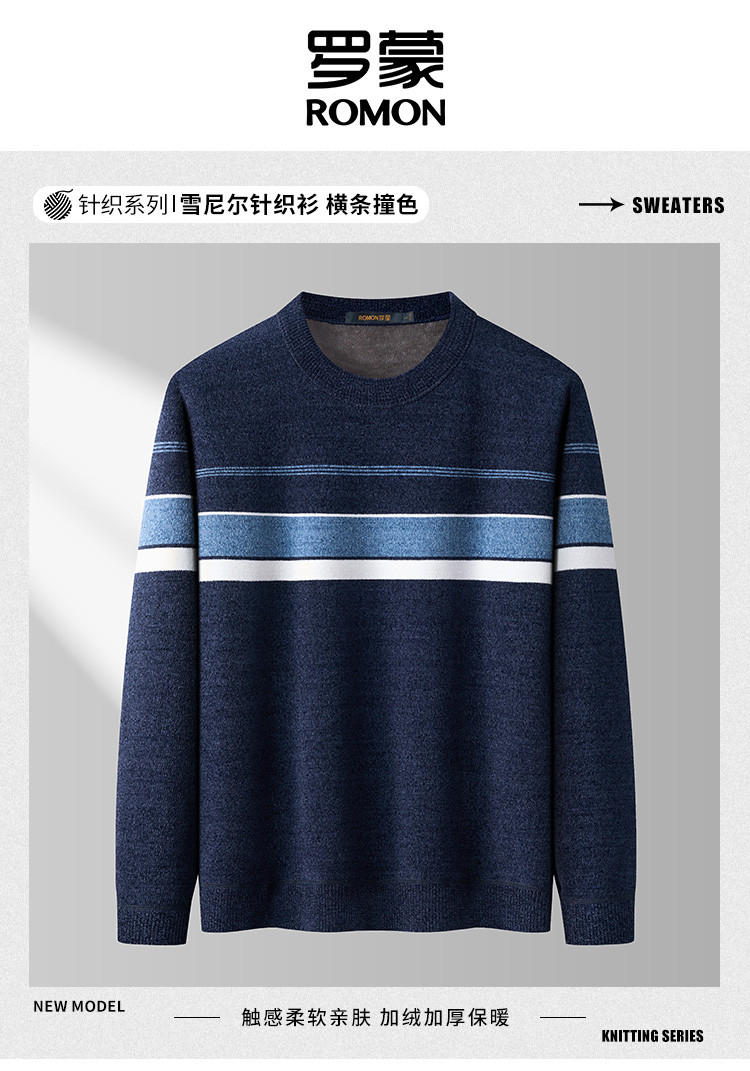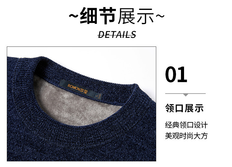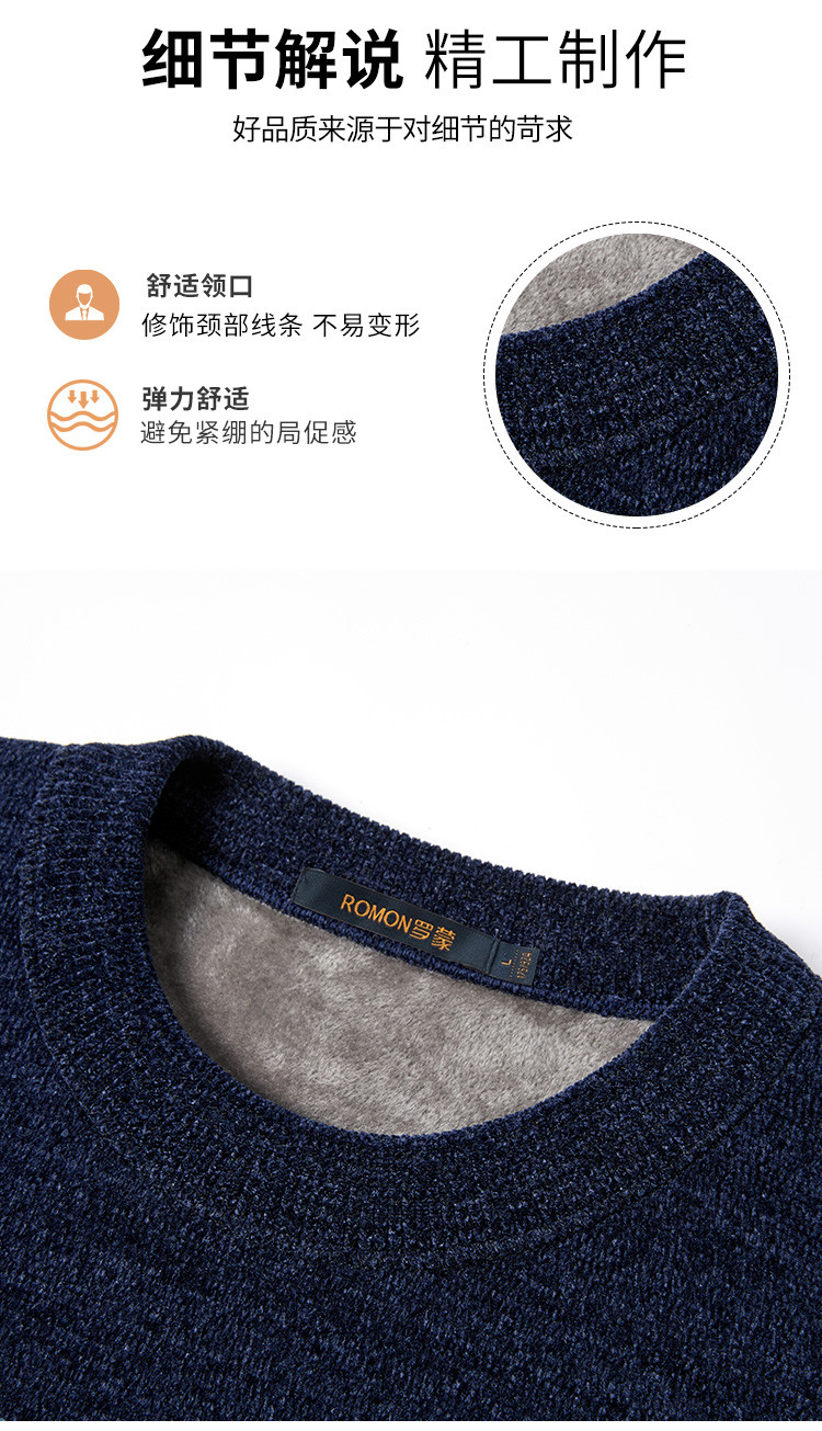 【加绒加厚】罗蒙秋冬男装肤感雪尼尔加绒毛衣男加绒针织衫男士毛衣加绒毛衫男