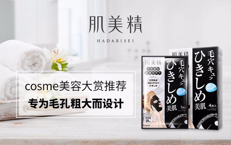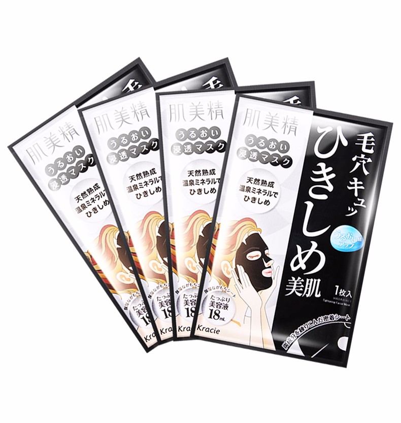 Kanebo嘉娜宝 KRACIE肌美精 保湿渗透面膜 收缩毛孔 黑面膜 4片 日本
