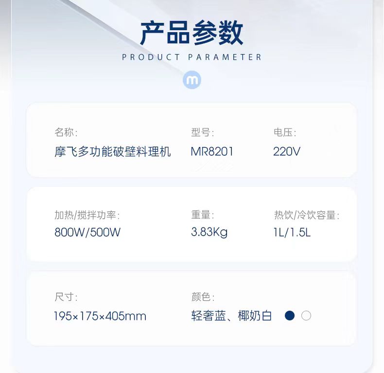 摩飞柔声破壁机 MR8201(颜色随机)