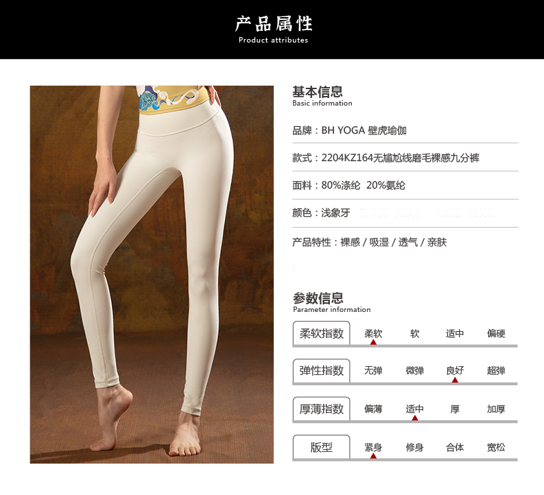 壁虎瑜伽【2204KZ164-象牙白】无尴尬线磨毛裸感九分裤(5天发货)