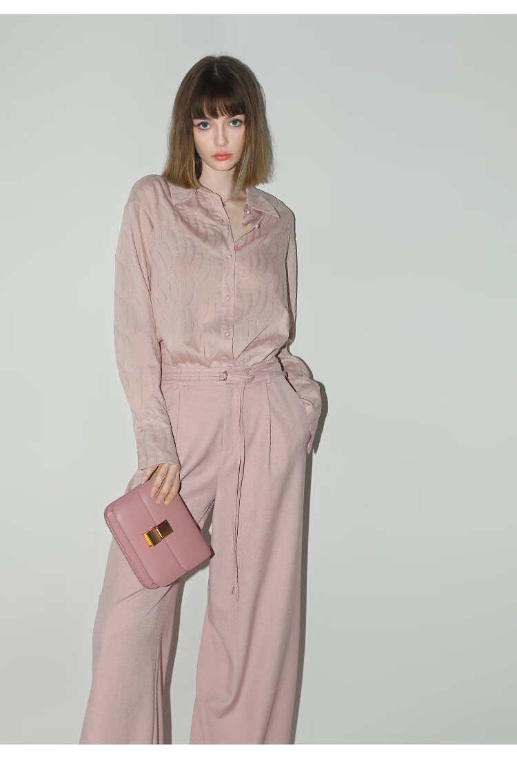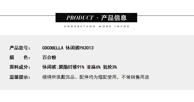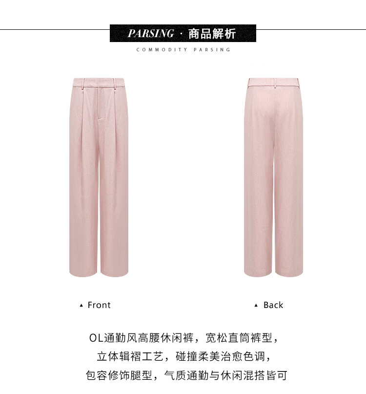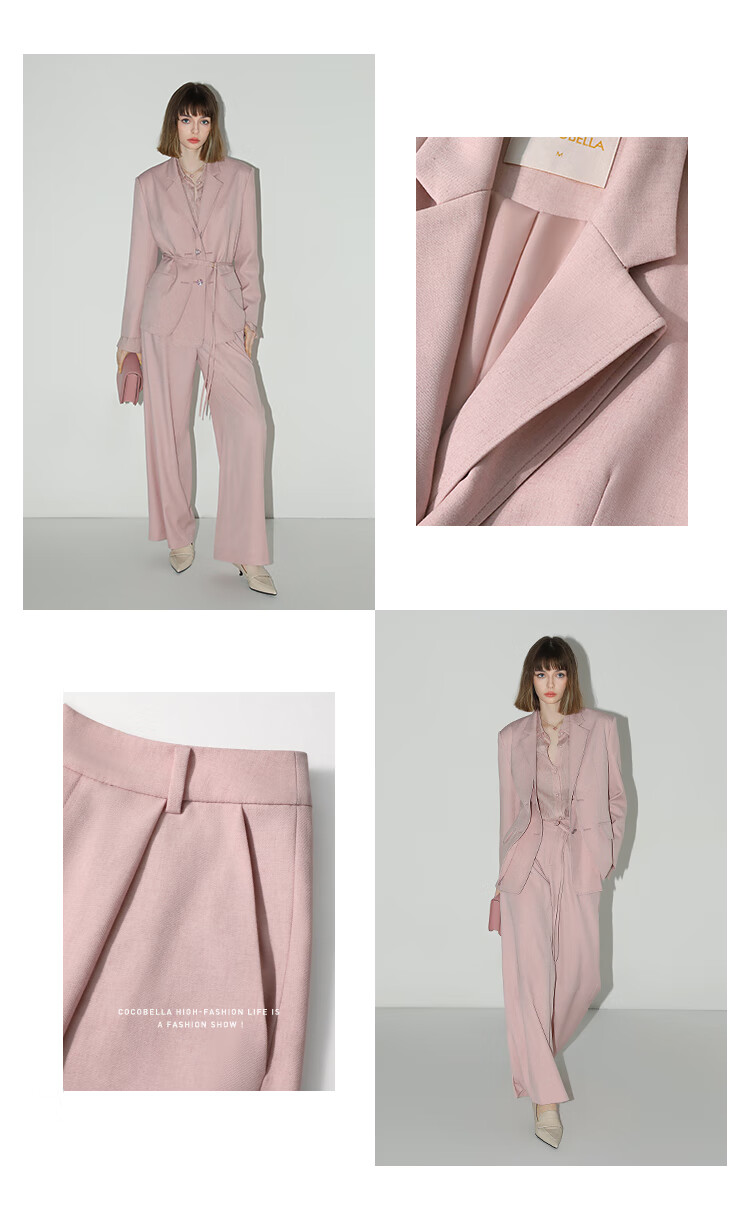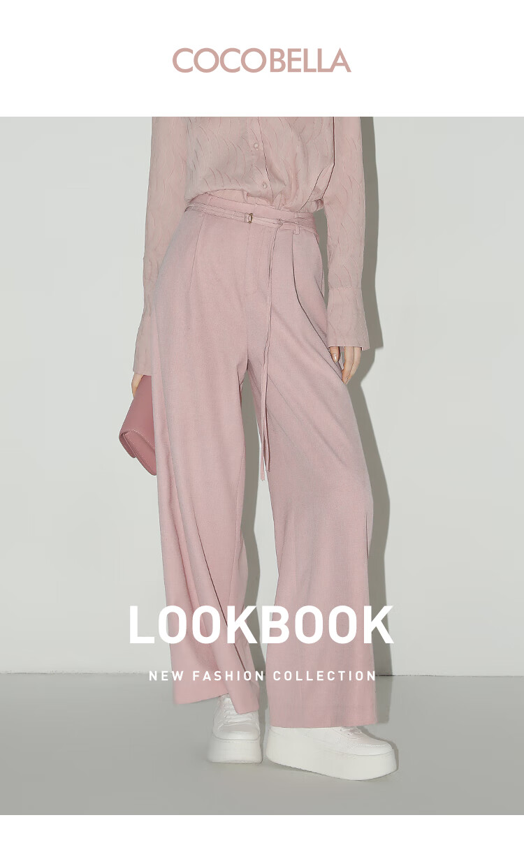 COCOBELLA多巴胺粉气质OL粉色阔腿裤女高腰西裤休闲裤PA3013