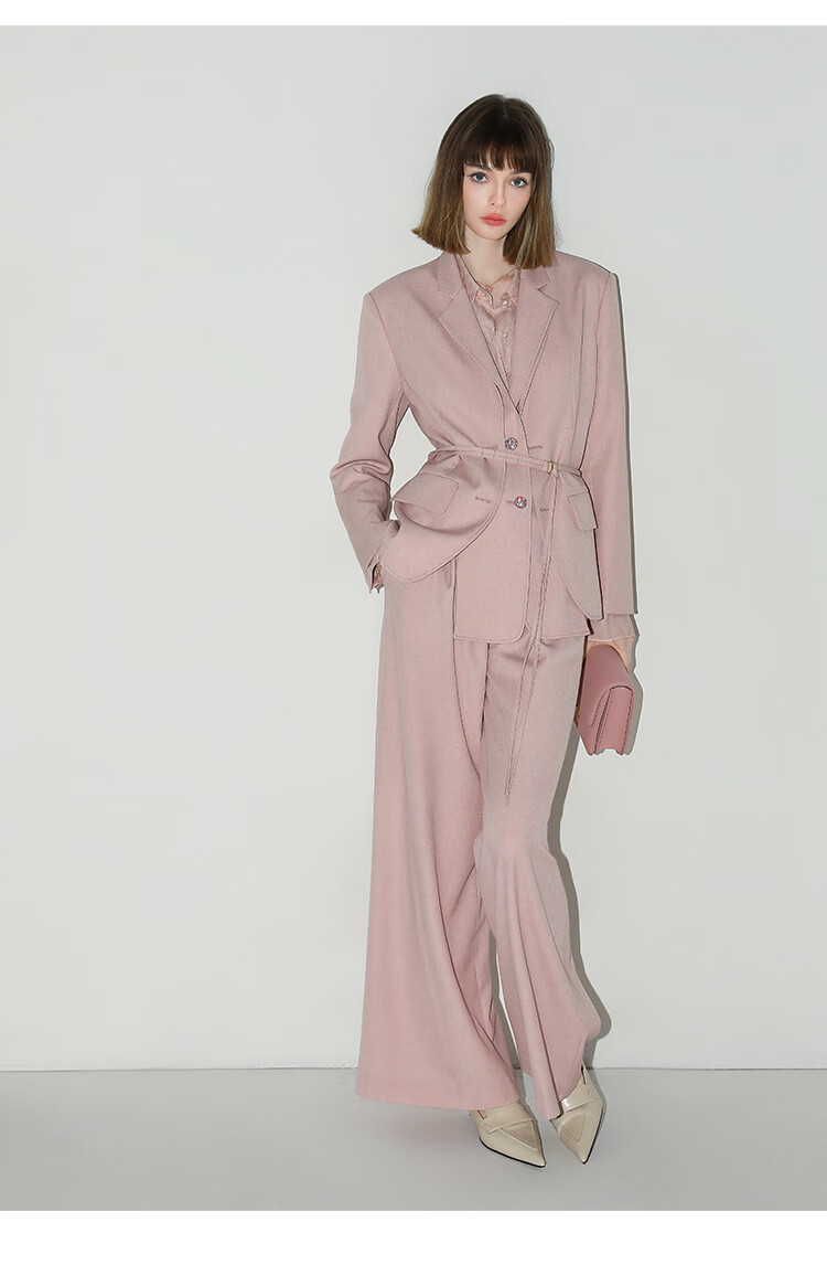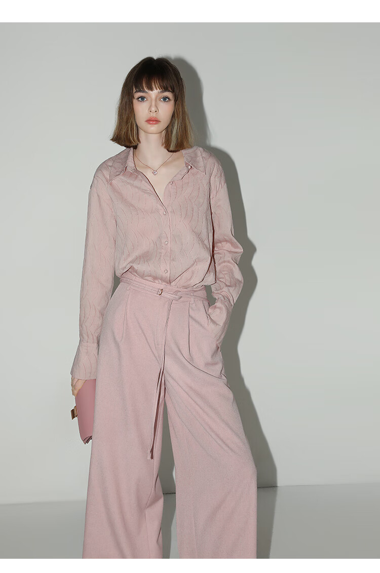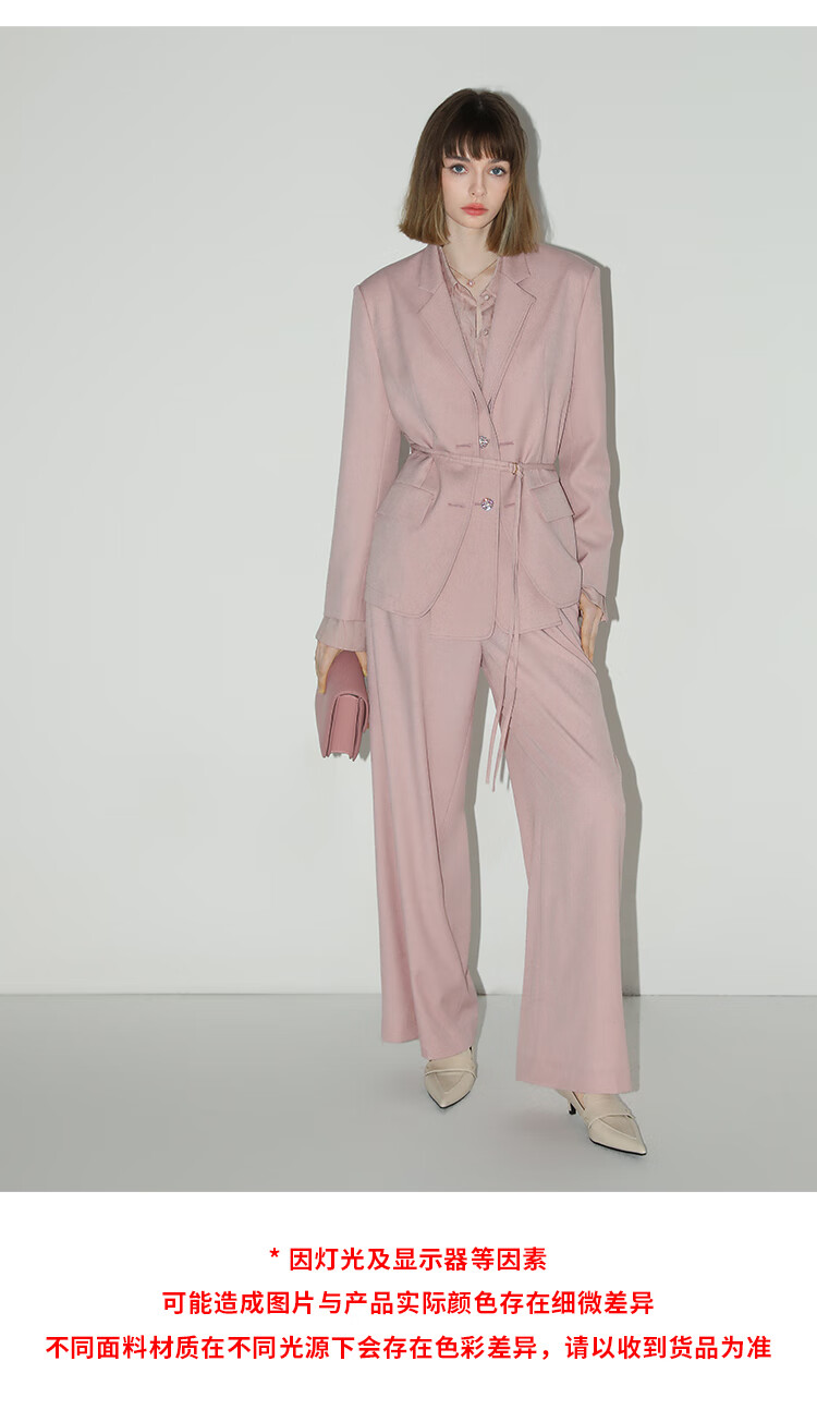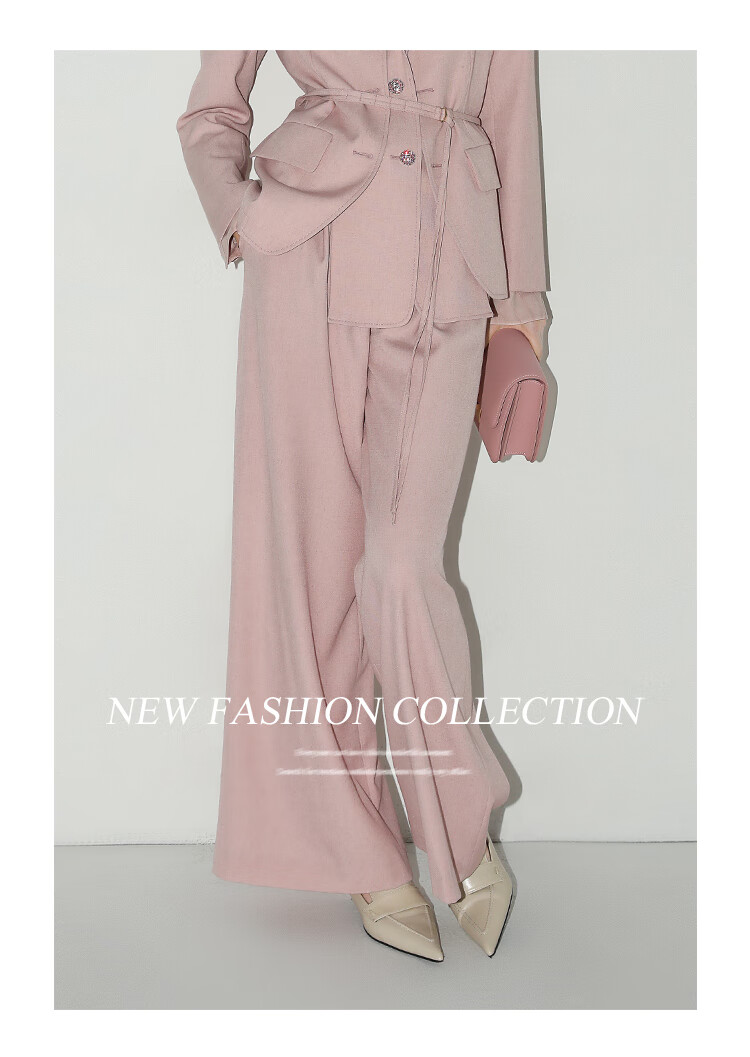 COCOBELLA多巴胺粉气质OL粉色阔腿裤女高腰西裤休闲裤PA3013