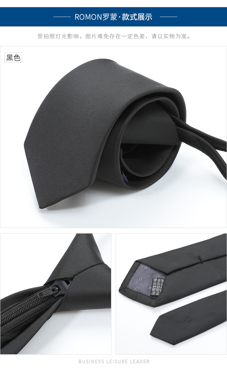 【礼盒款】罗蒙6厘米拉链领带男士领带简约纯色百搭舒适大众商务职场
