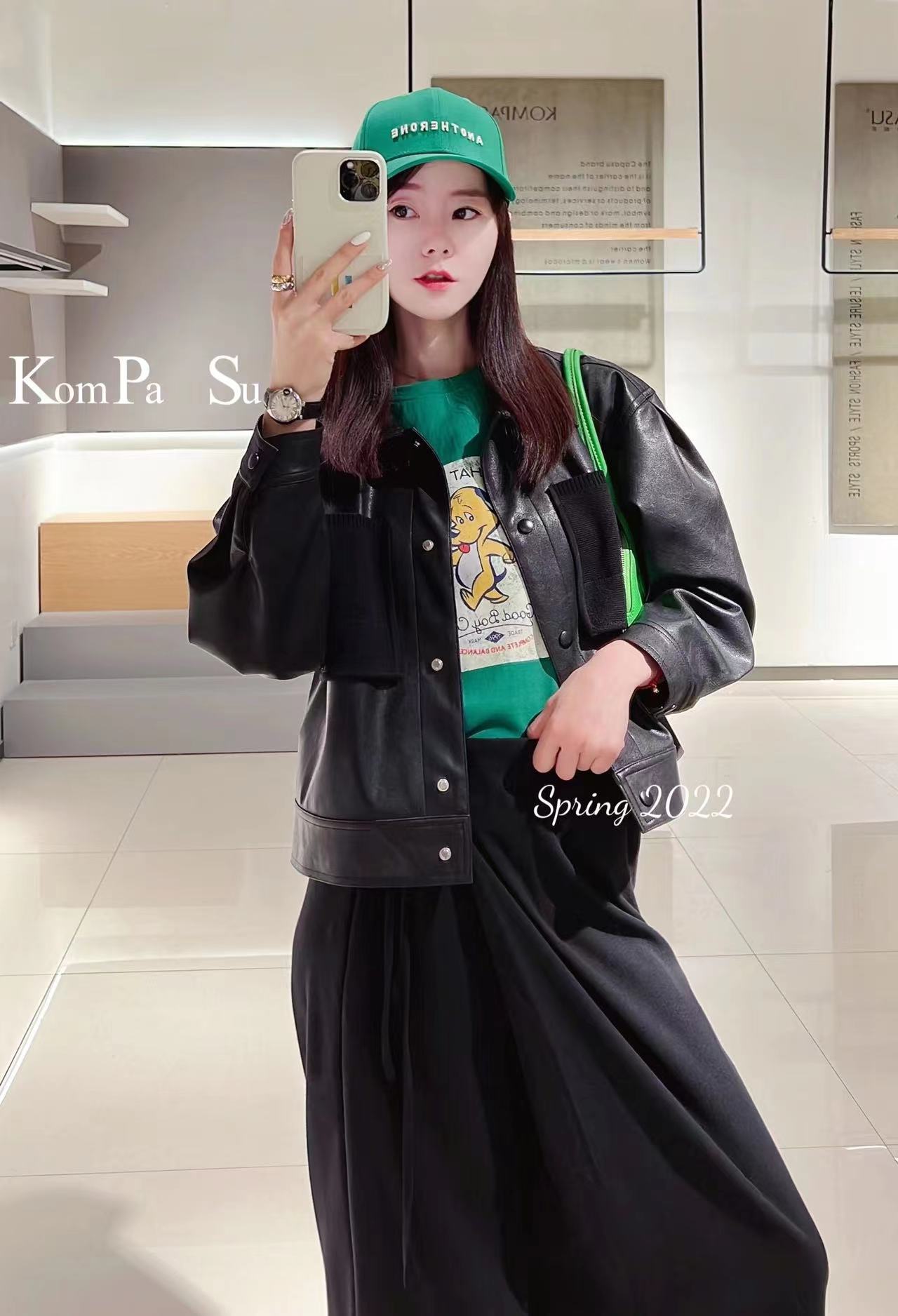 Lagogo拉谷谷2022春新款V领针织衫女复古宽松开衫毛衣外套慵懒风LAMM871A37