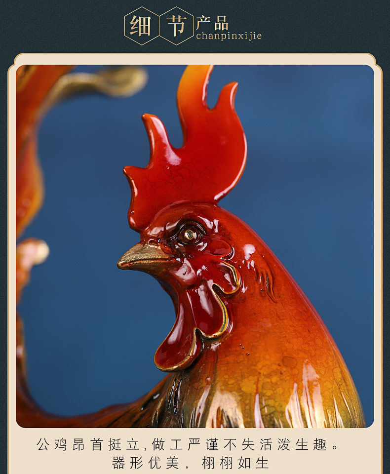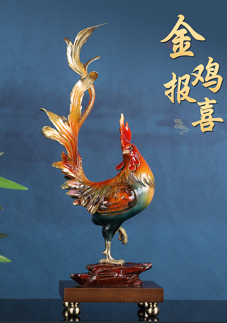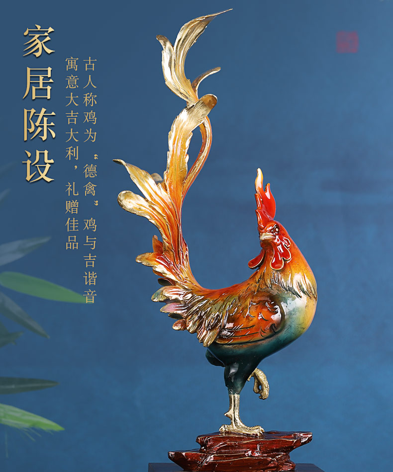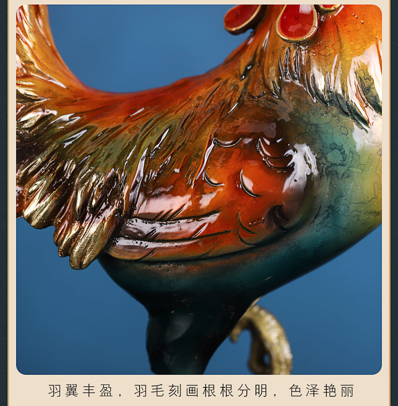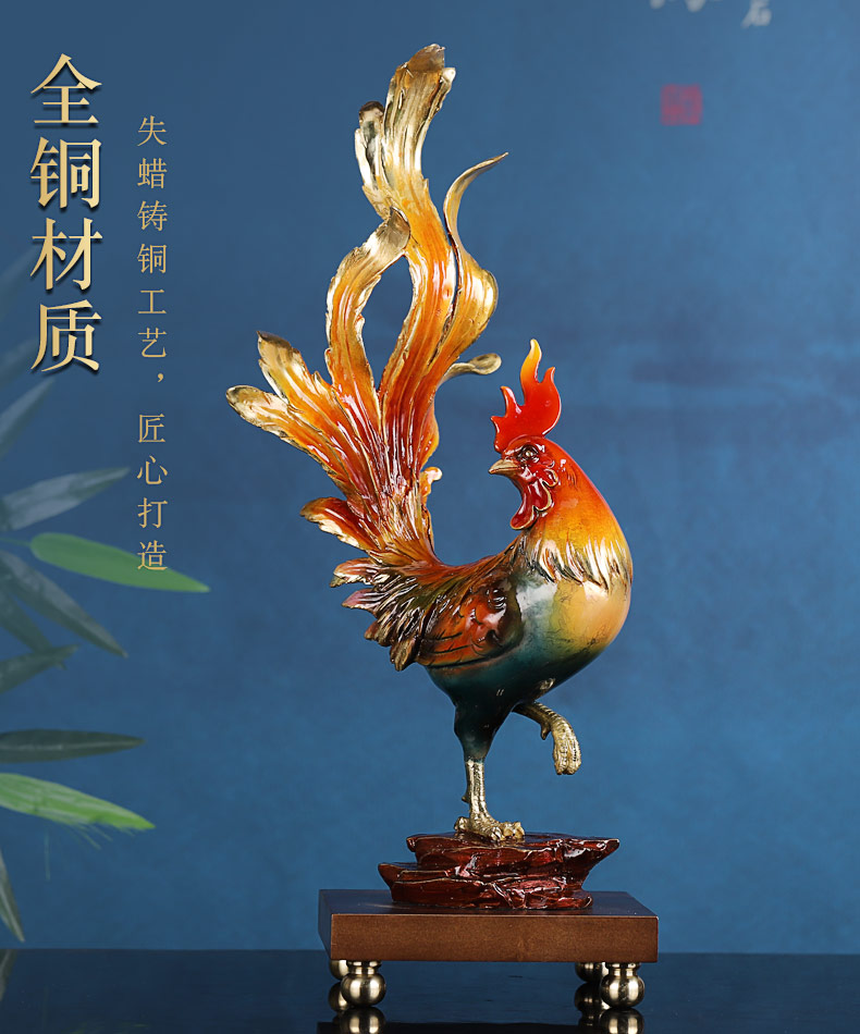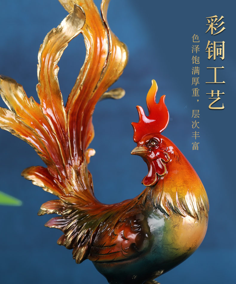 金鸡报喜纯铜鸡摆件公鸡招财金鸡家居玄关客厅装饰礼品工艺办公室彩铜工艺 金鸡报晓(145*140*420)
