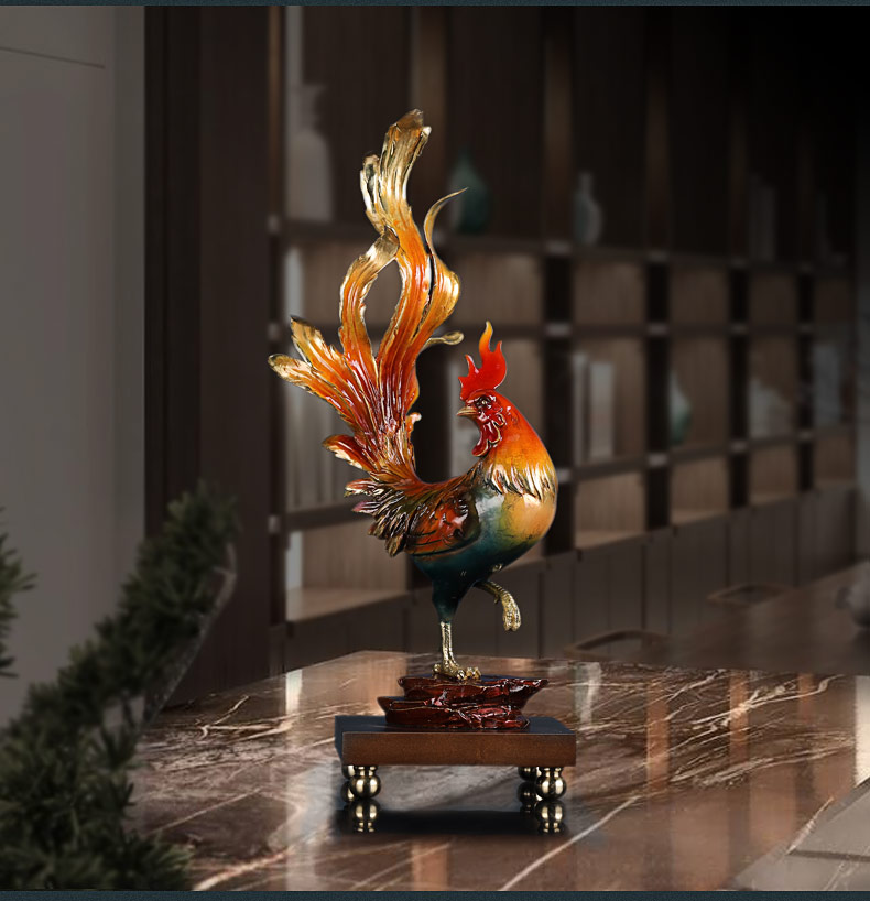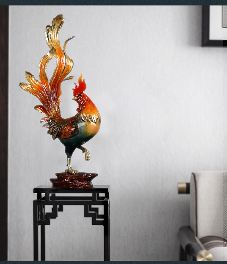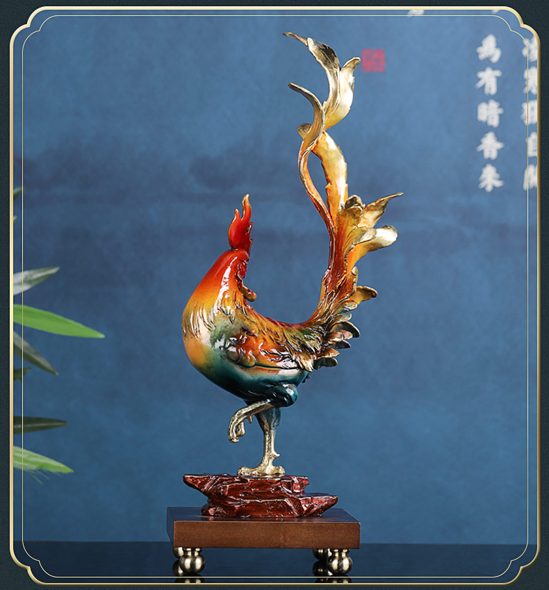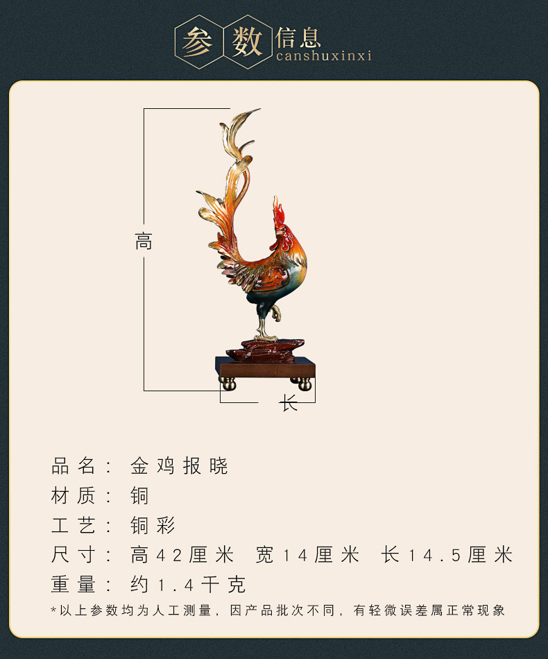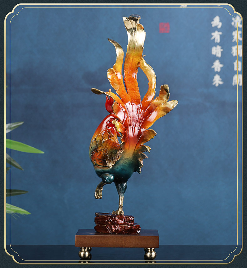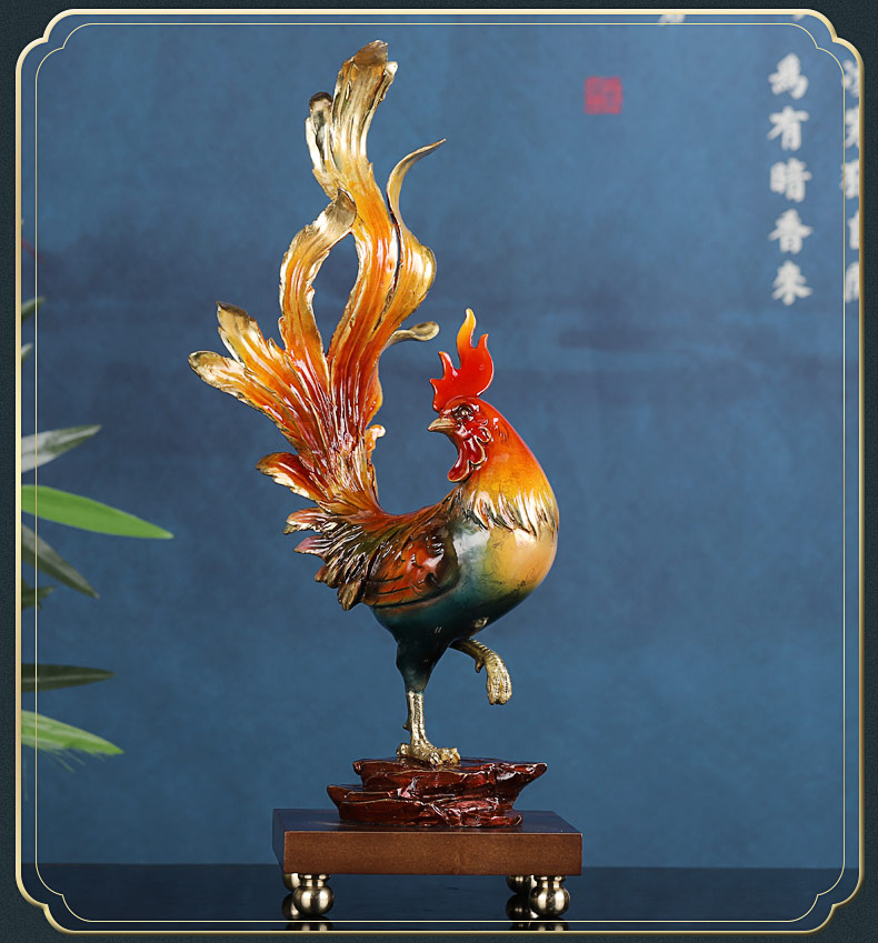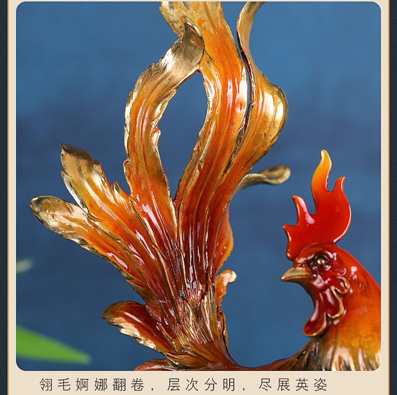 金鸡报喜纯铜鸡摆件公鸡招财金鸡家居玄关客厅装饰礼品工艺办公室彩铜工艺 金鸡报晓(145*140*420)