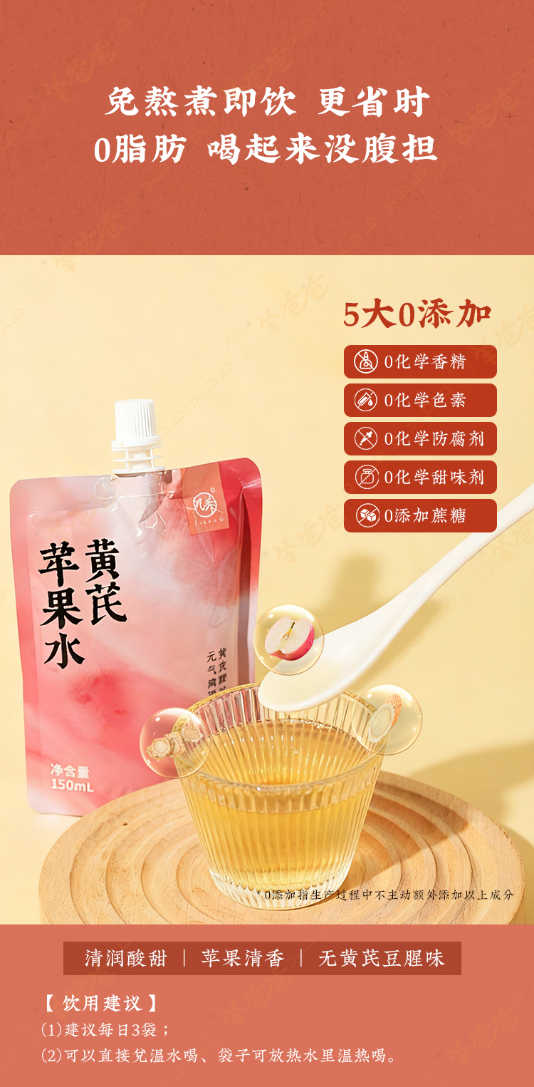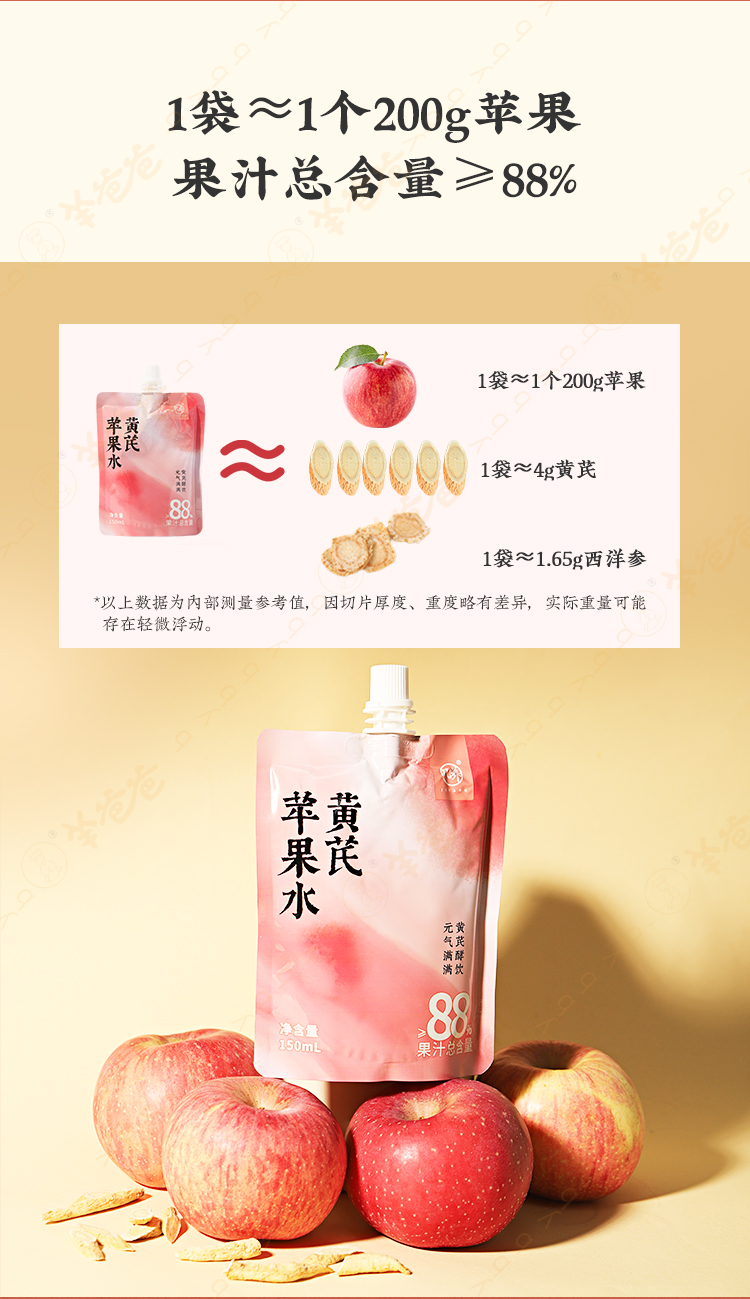 补货中,预计12月底到货【黄芪苹果水】几养|开袋即饮 不惧熬夜,红润透亮 喝出素颜肌