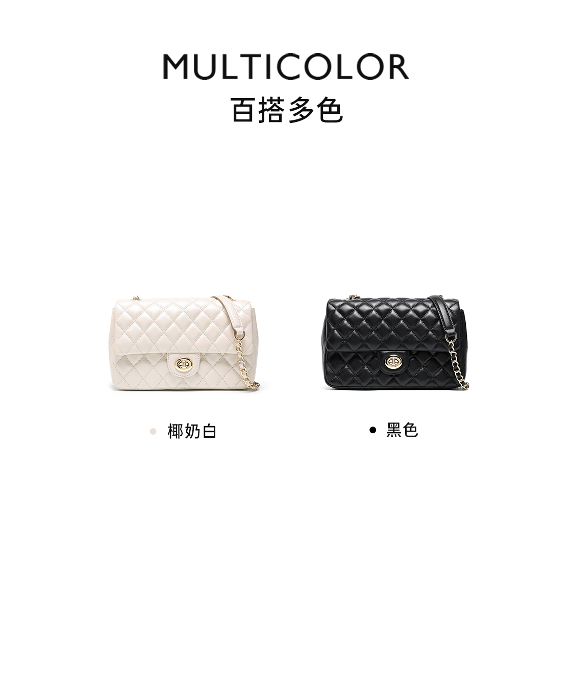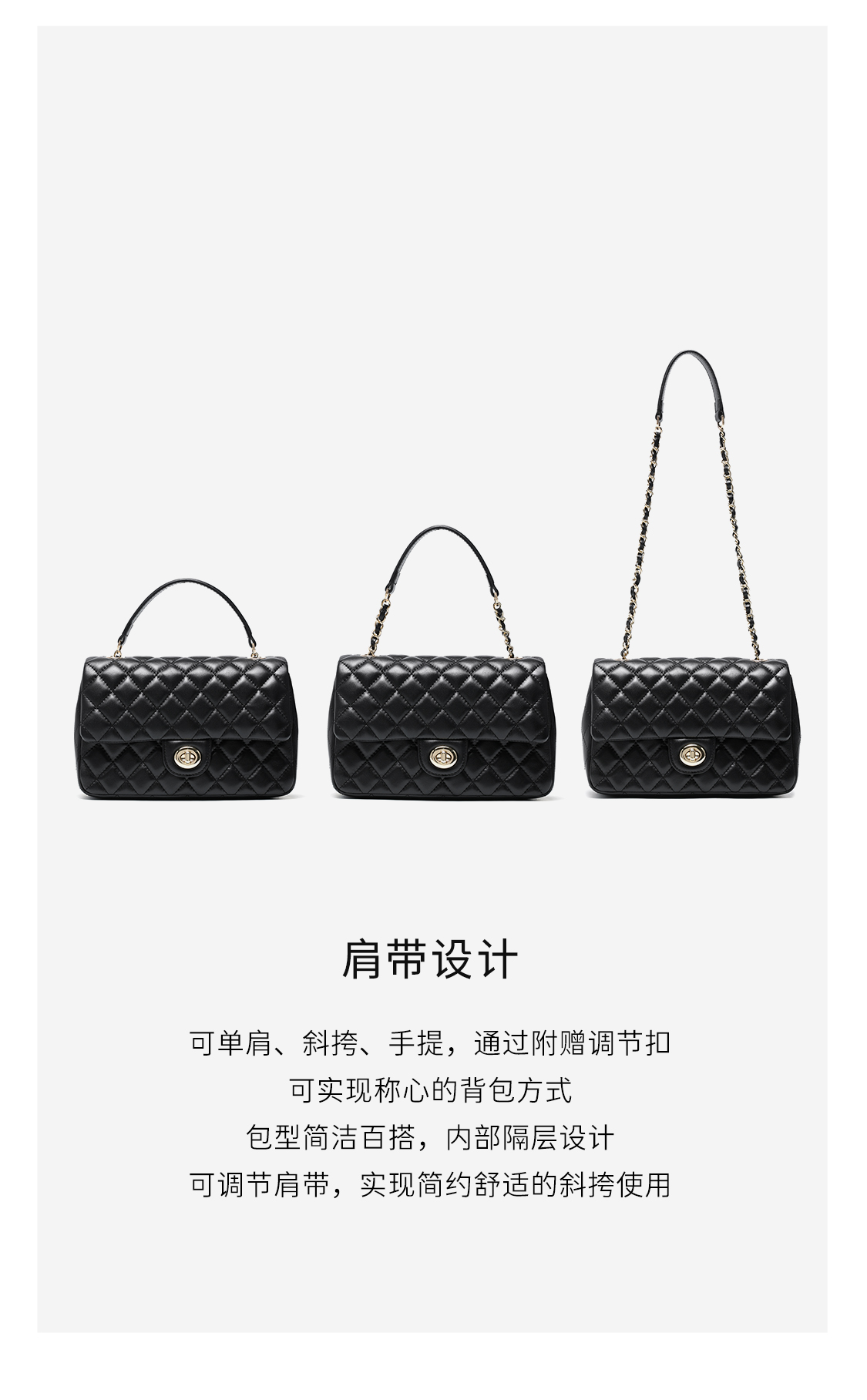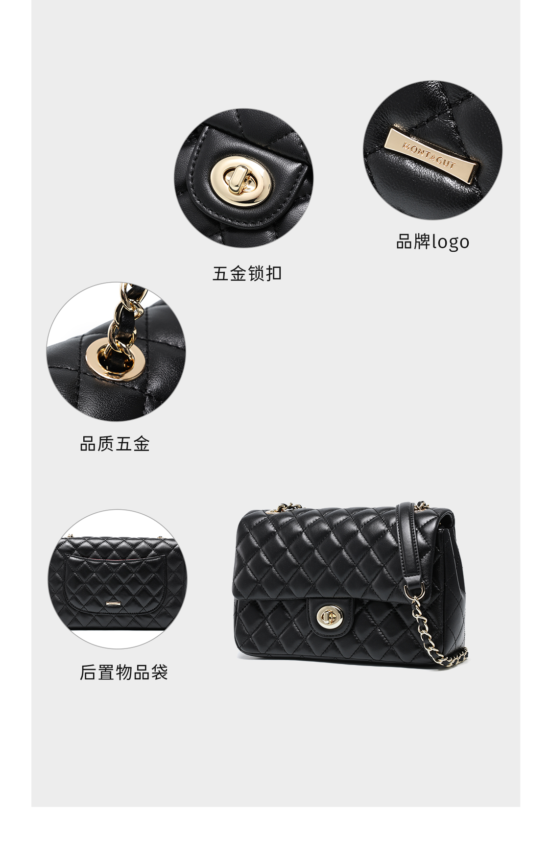 梦特娇女士潮流单肩包新款百搭真皮菱格包时尚斜挎包羊皮链条包 黑色