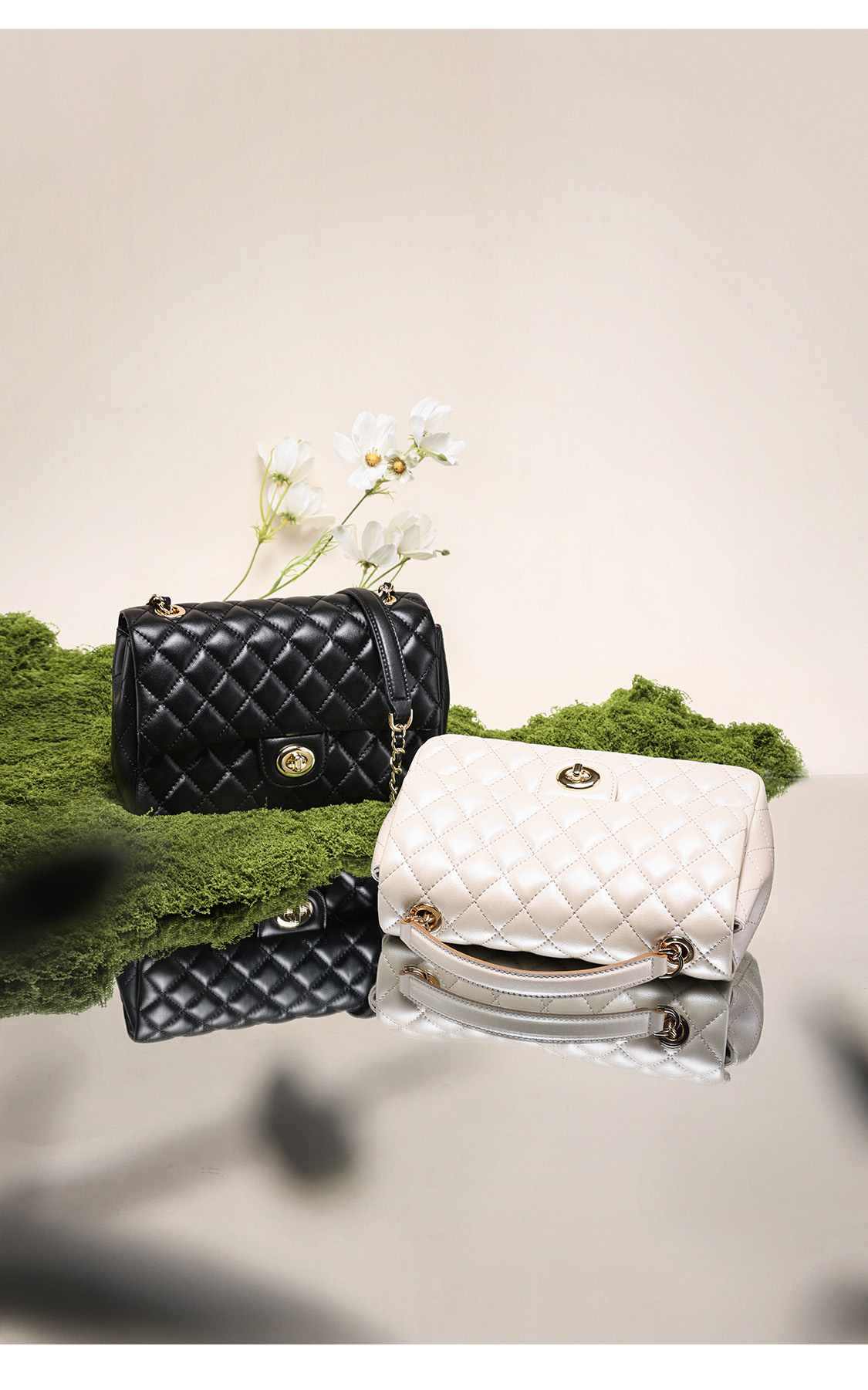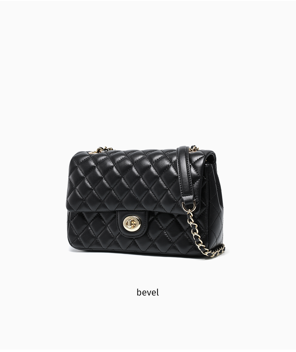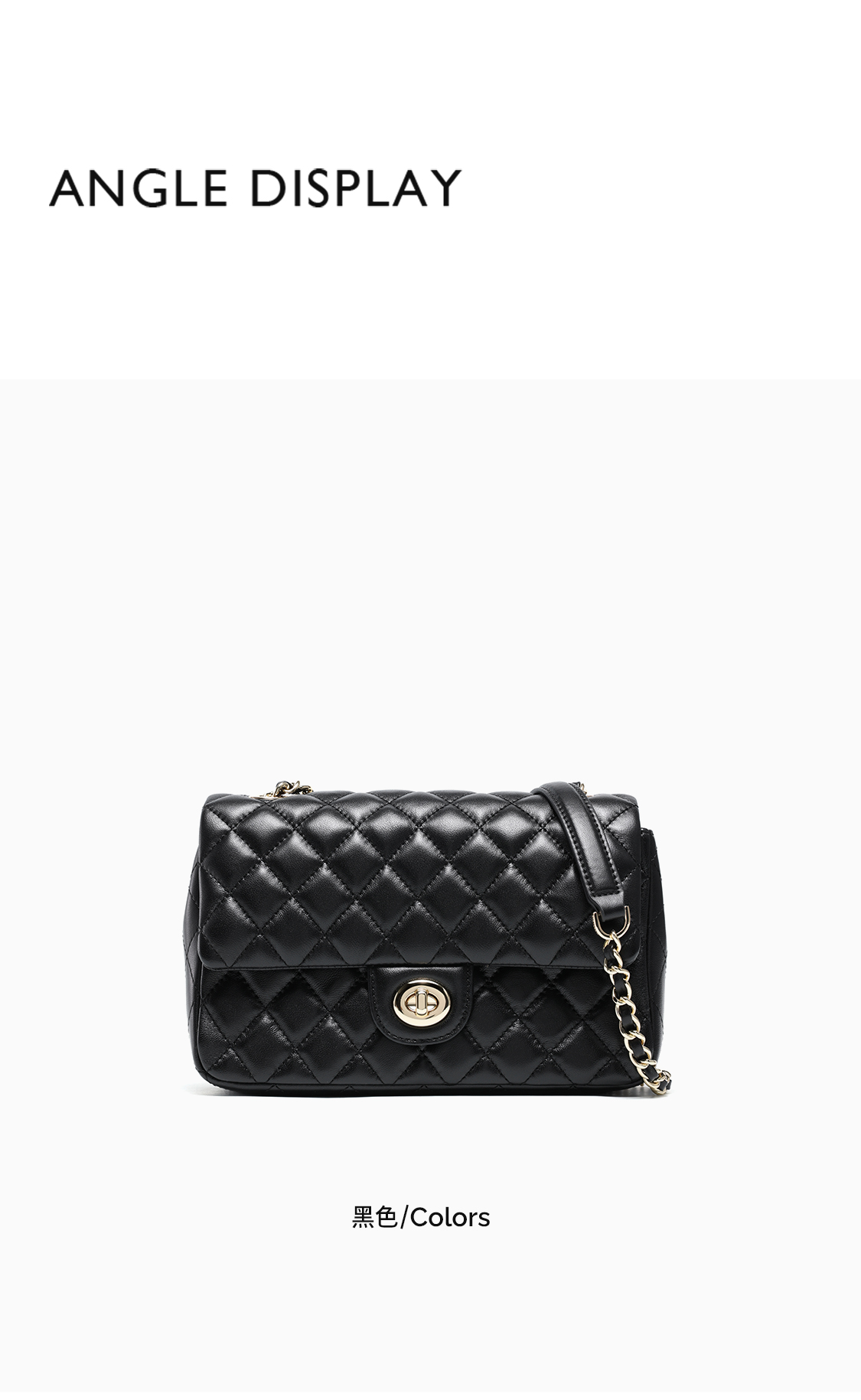 梦特娇女士潮流单肩包新款百搭真皮菱格包时尚斜挎包羊皮链条包 黑色