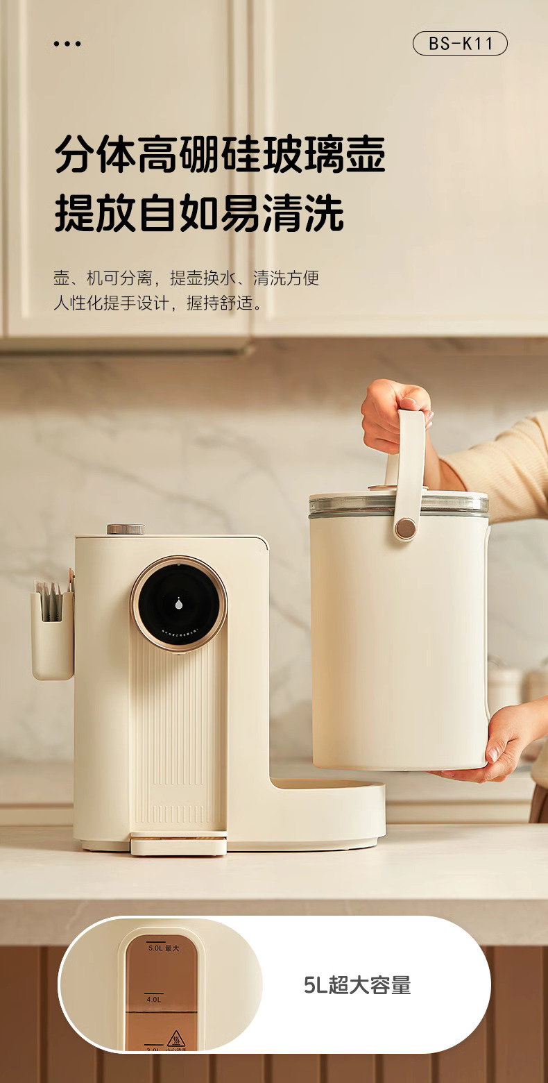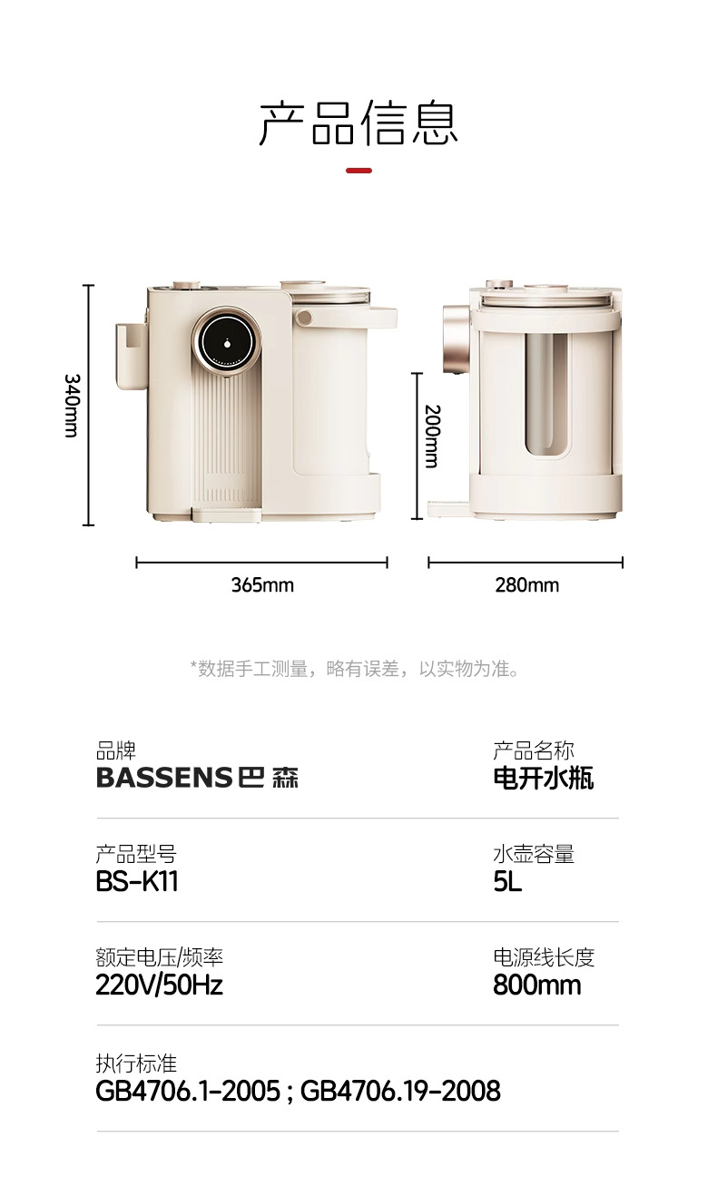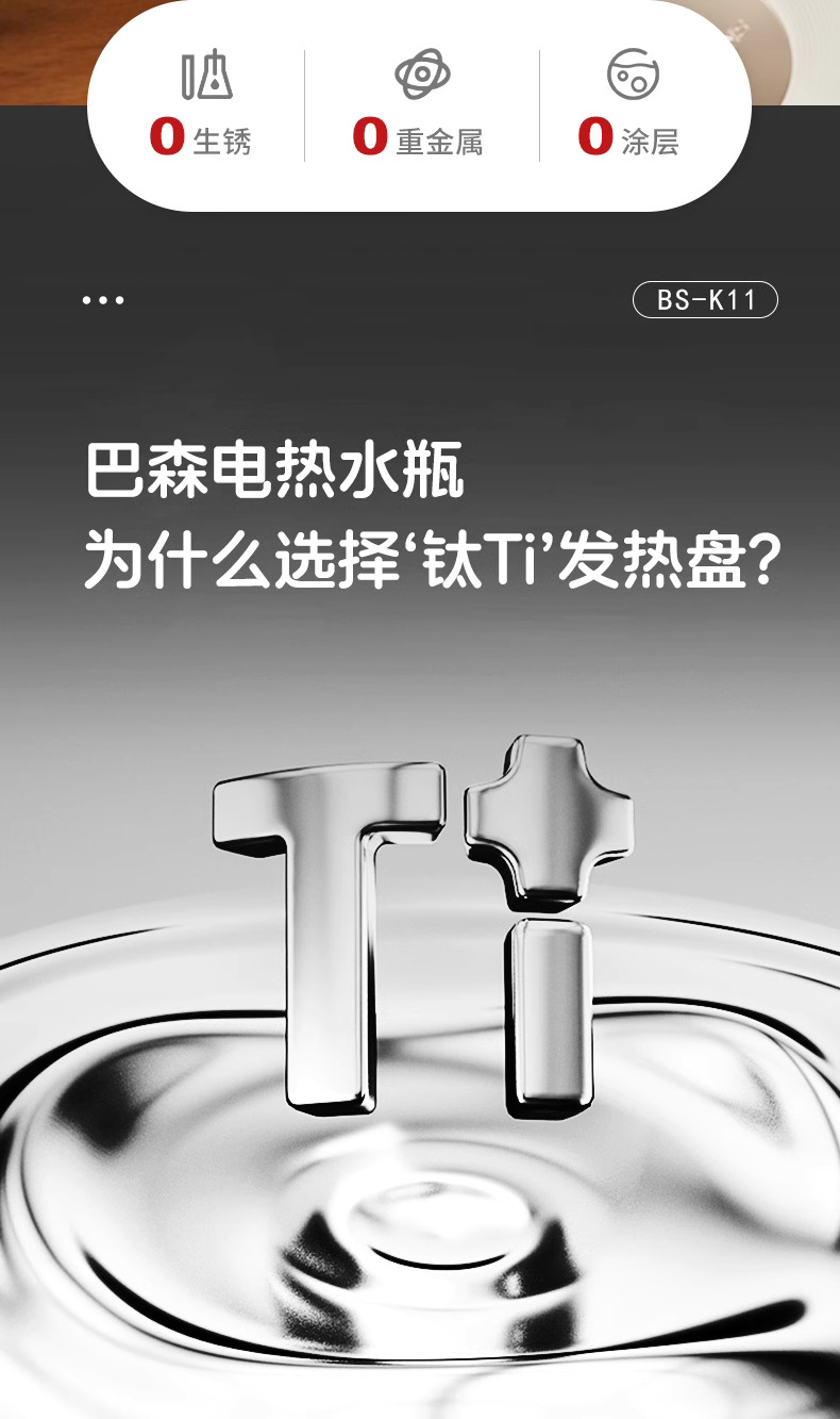 巴森钛电热水瓶恒温烧水壶5L大容量家用除氯保温智能饮水机开水壶