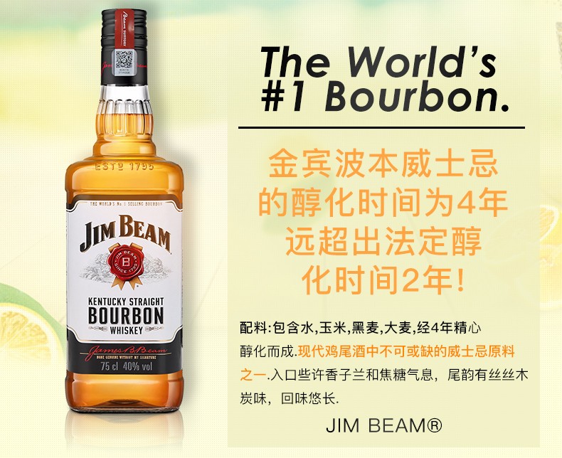 占边(金宾)波本威士忌750ml 2瓶包邮