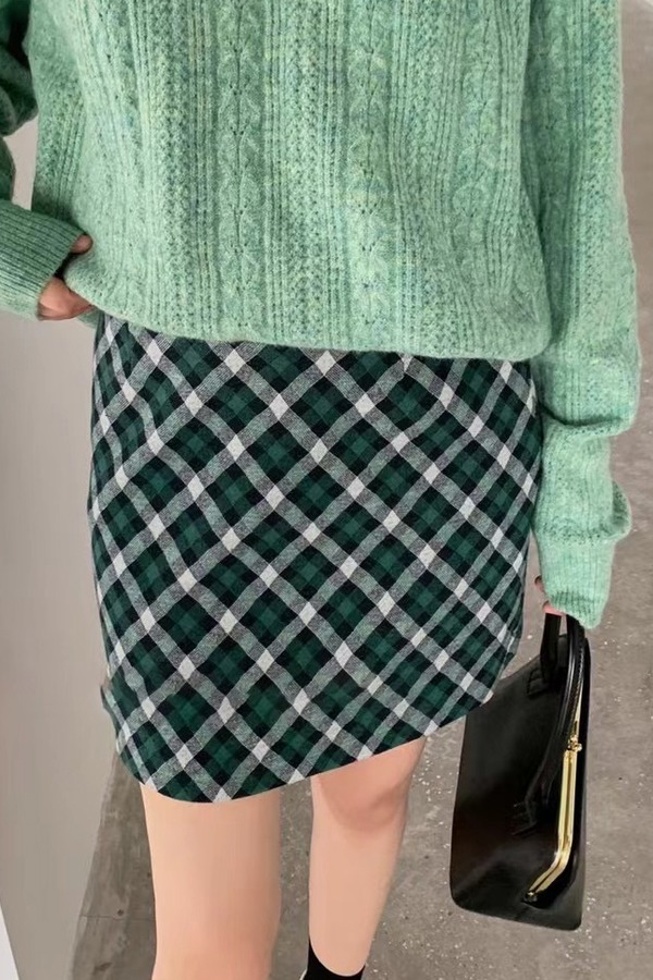 Stay2Weeks 格纹包臀A字半裙 14836