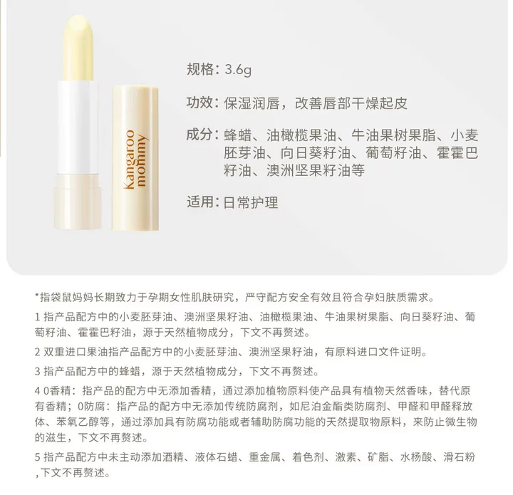 袋鼠妈妈小麦胚芽水润倍护润唇膏-3.6g