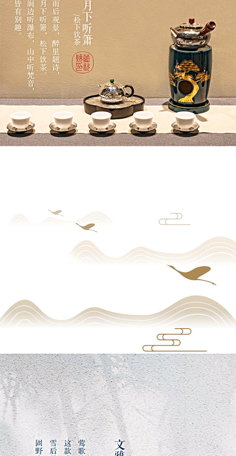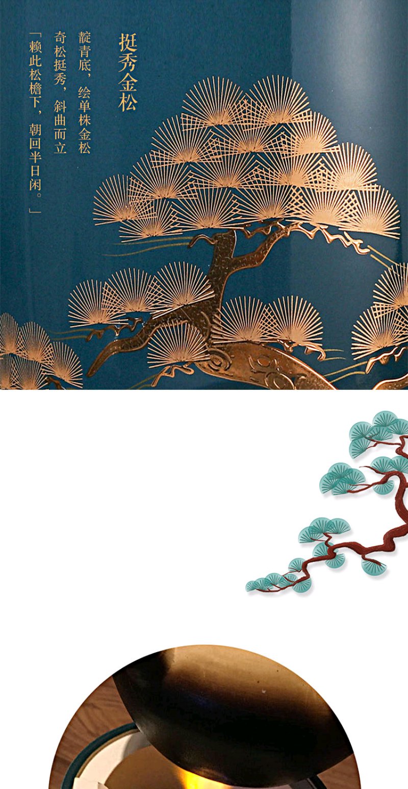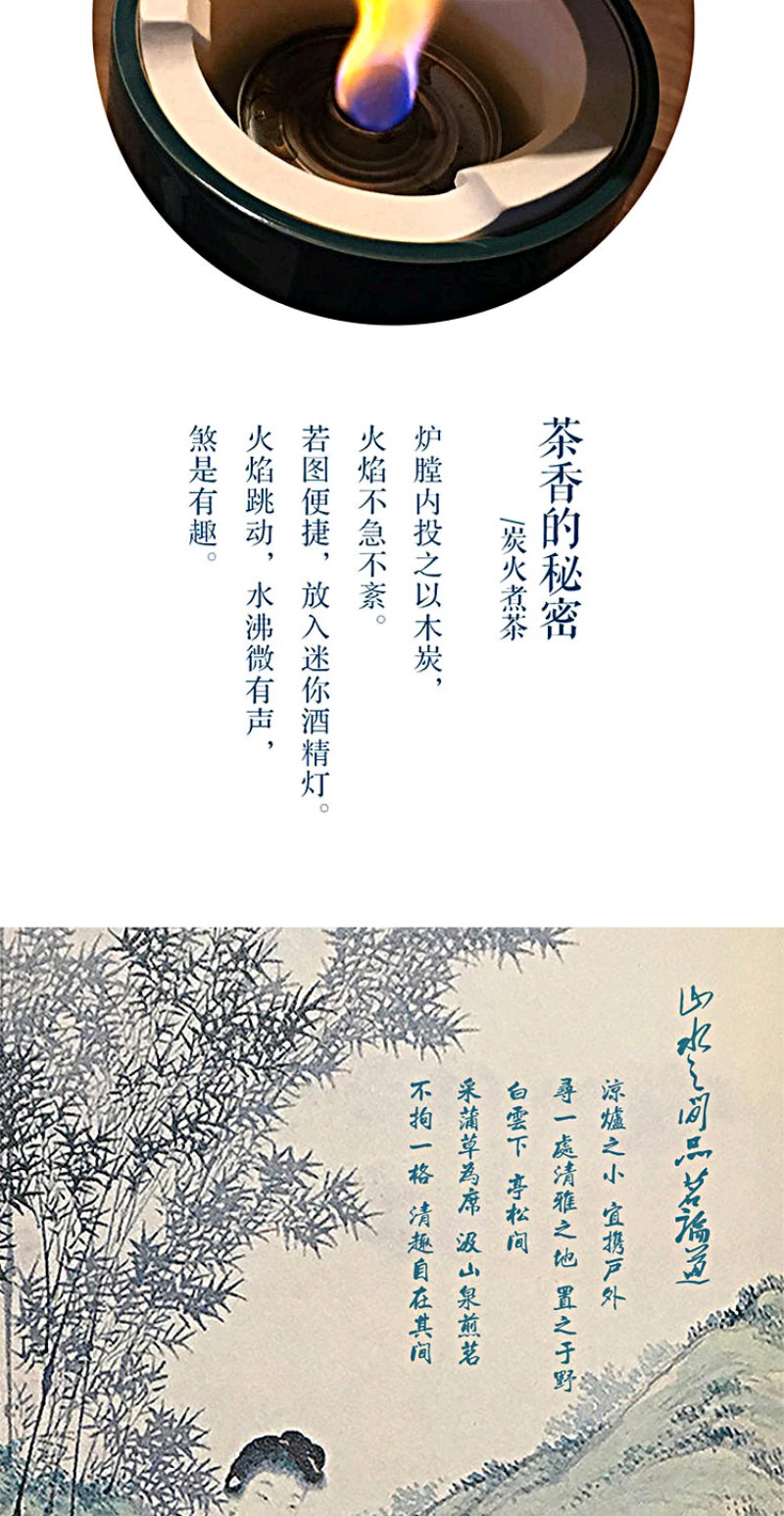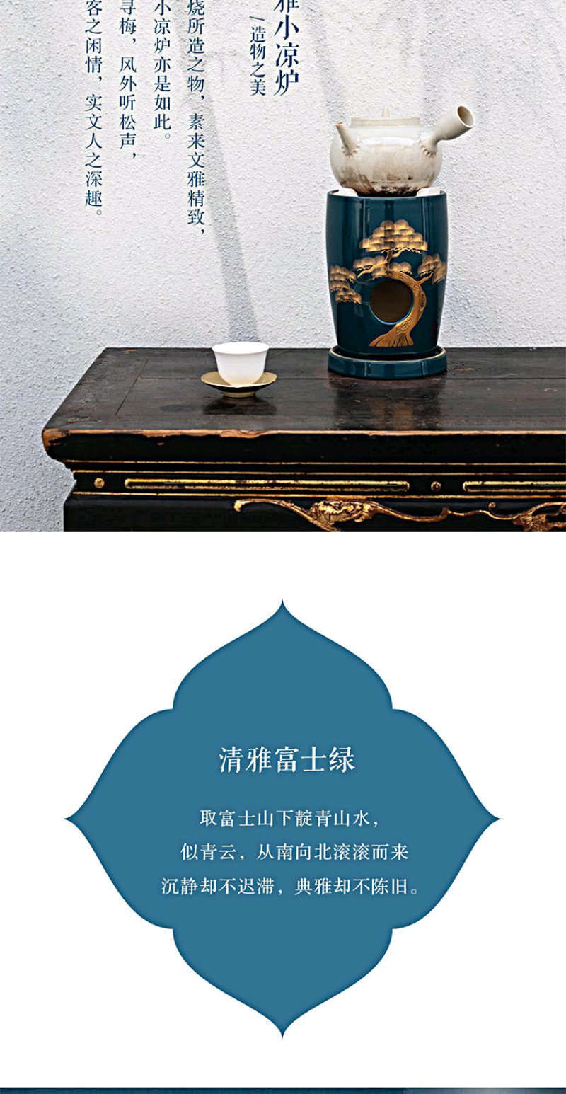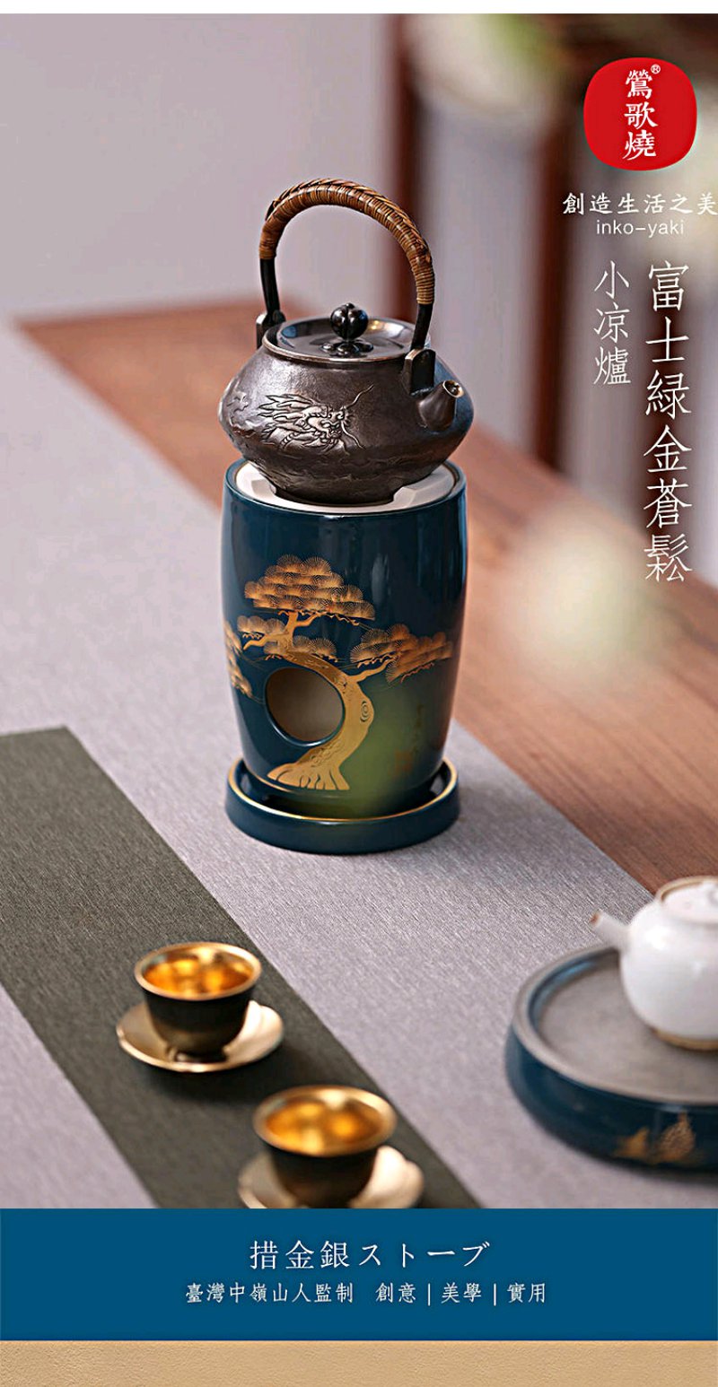 莺歌烧 富士绿金苍松两用炉 小凉炉茶道配件台式小型铁银铜壶