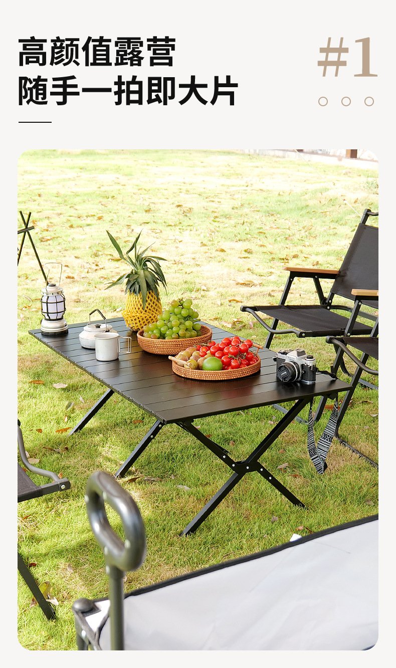 「数款颜色尺寸可选!折叠蛋卷桌」 户外折叠桌蛋卷桌露营桌子 便携式高颜值野餐桌椅露营装备椅桌套装户外装备