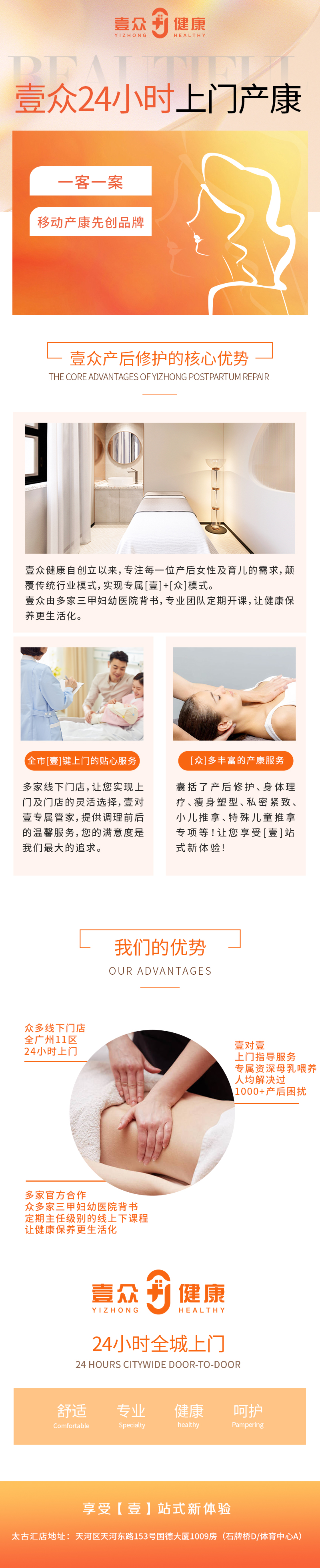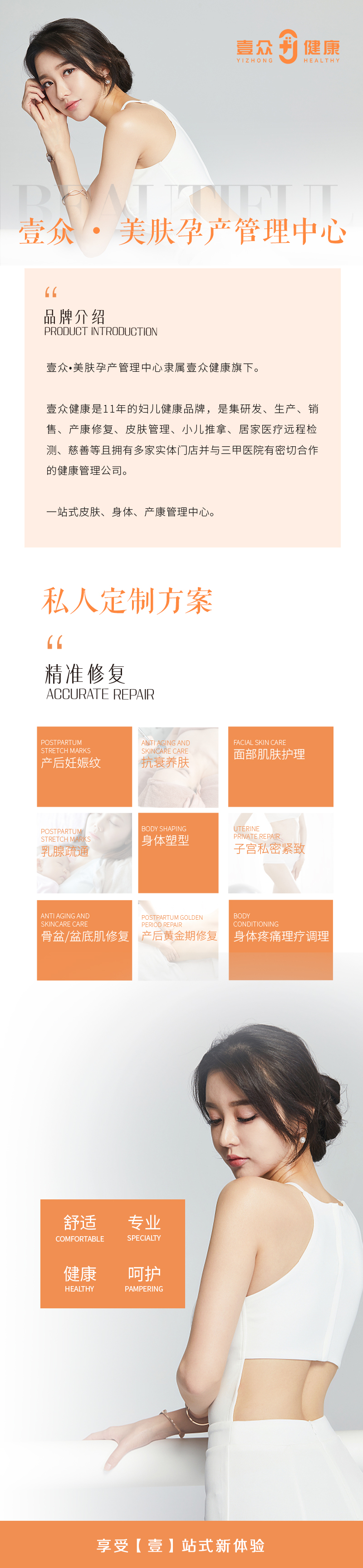 广州壹众·美肤孕产管理中心专注每一位产后女性及育儿的需求,颠覆传统行业模式,实现专属【壹】+【众】模式。壹众有多家三甲妇幼医院背书,专业团队定期线上线下开课,让健康保养更生活化。