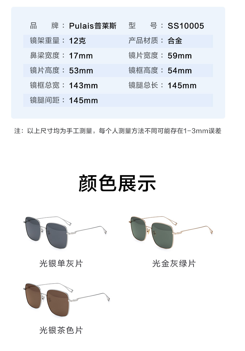【特价秒杀款】普莱斯SS10005 合金 全框太阳镜