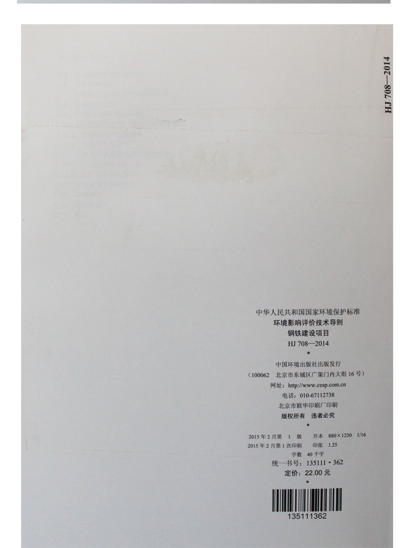 HJ 708-2014 环境影响评价技术导则 钢铁建设项目 国家标准GB 环境保护环境科学中国环境出版社 135111362