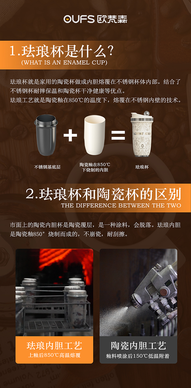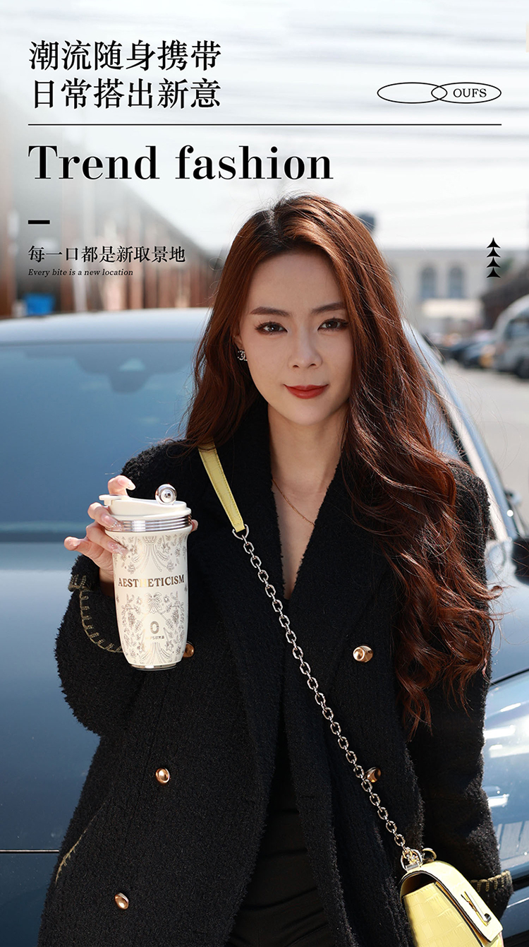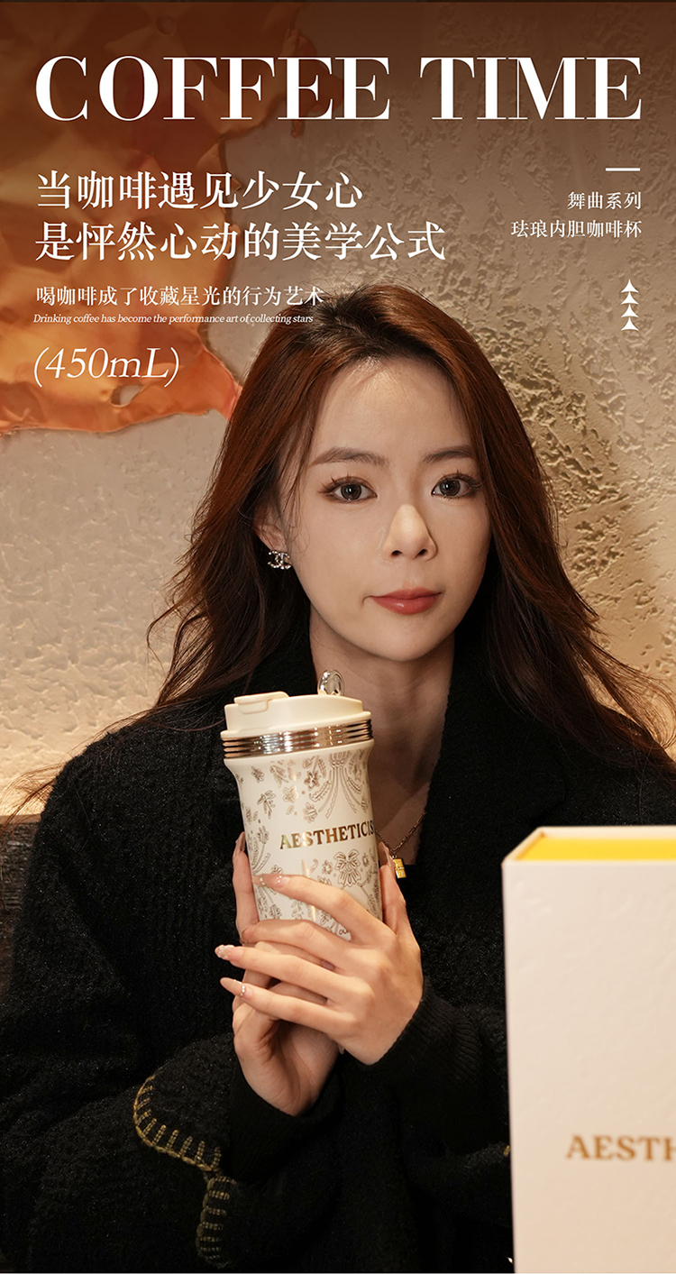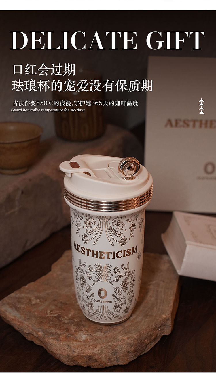 OUFS欧梵森真健康珐琅保温杯 99.9%抗菌锁味 女士高颜值水杯长效保温450ml咖啡杯