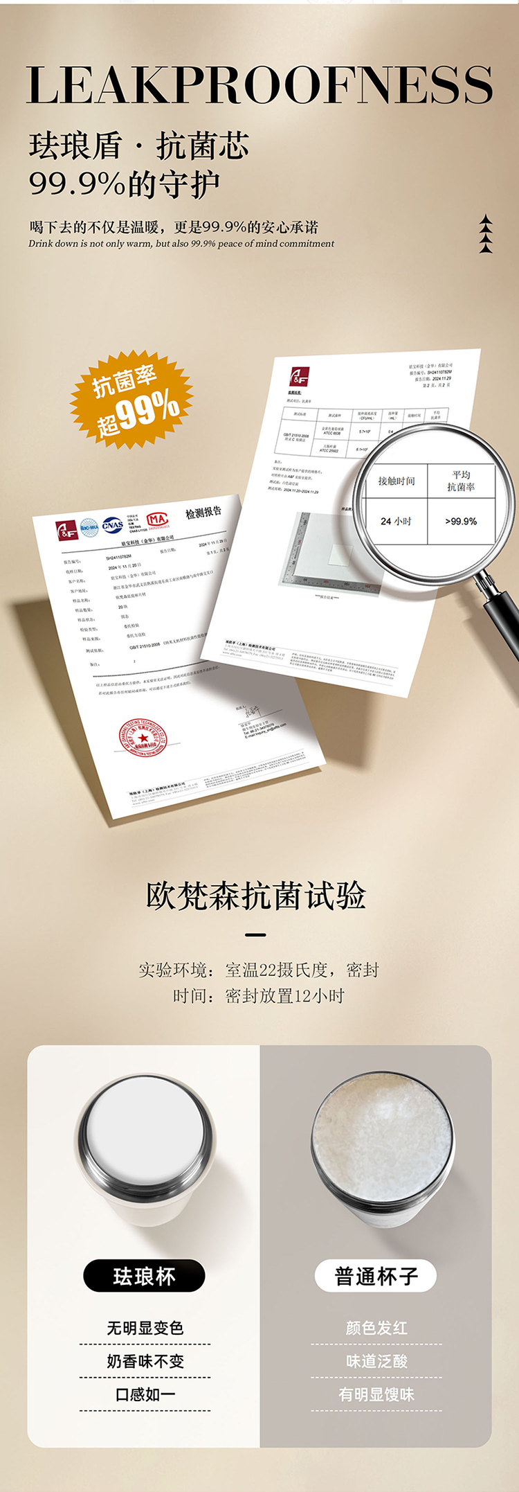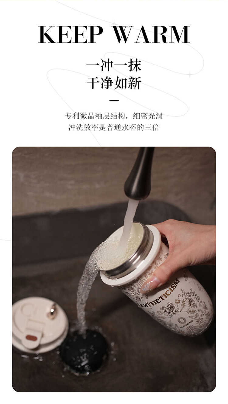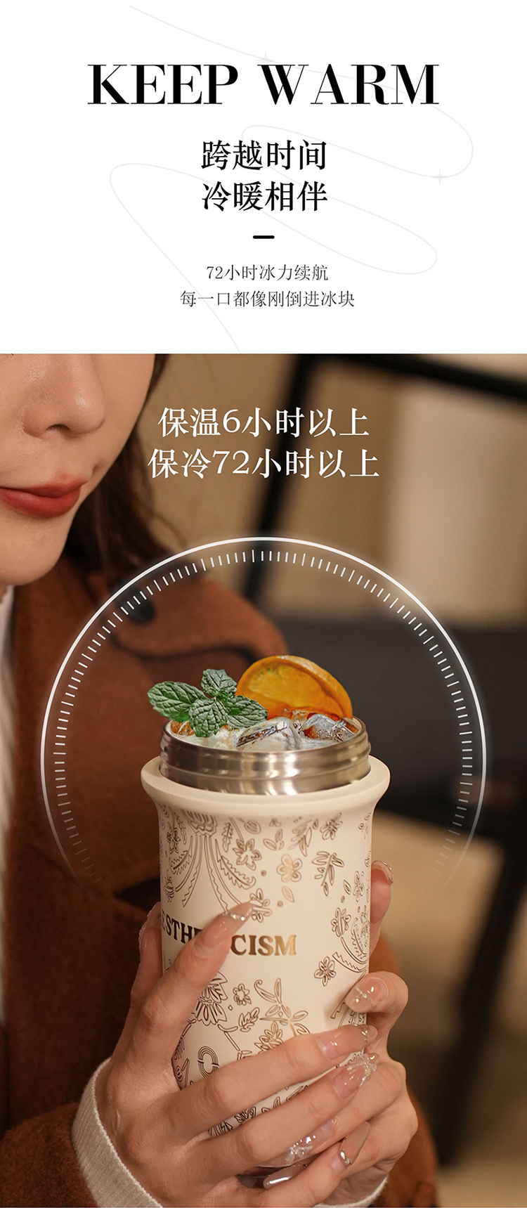 OUFS欧梵森真健康珐琅保温杯 99.9%抗菌锁味 女士高颜值水杯长效保温450ml咖啡杯