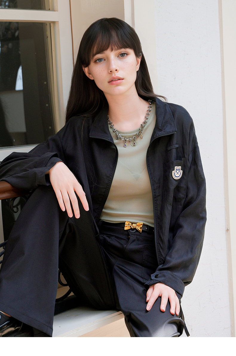 谜底立领小外套女士2025秋季新款休闲百搭宽松薄款长袖257MW7842