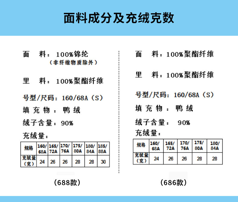面料:100%聚酯纤维里料:100%聚酯纤维 填充物:鸭绒 绒子含量:90%