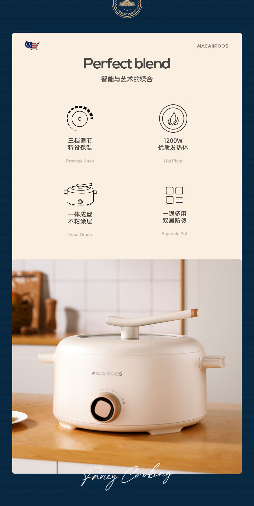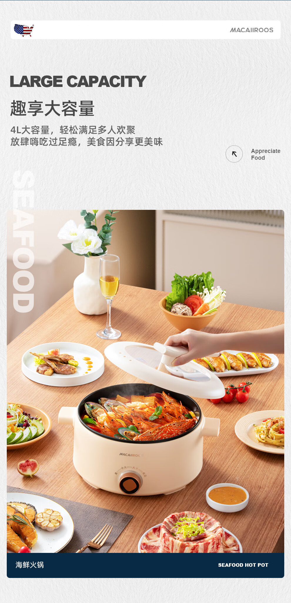 【小家电】迈卡罗MC-HG419电火锅多功能锅家用电煮炖锅料理锅HF