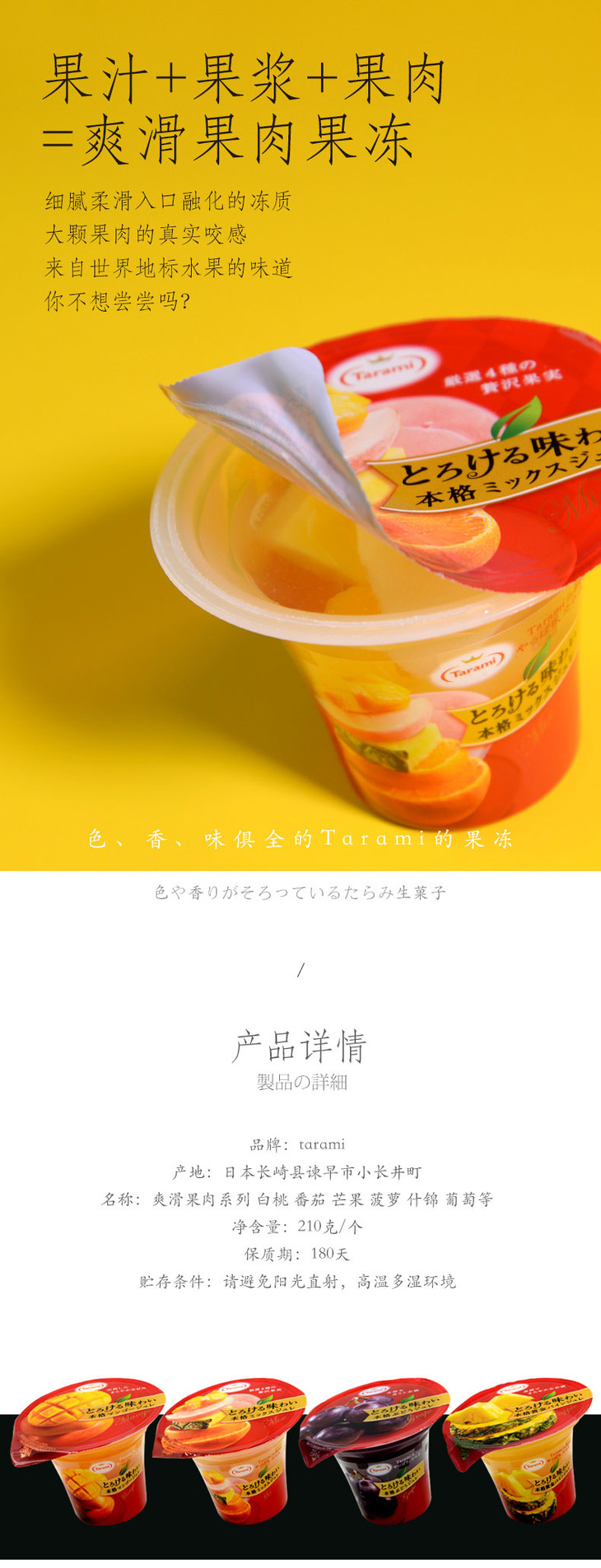 日本原装进口tarami 本格果肉果冻白桃味果冻(杯型) 210g(021794)