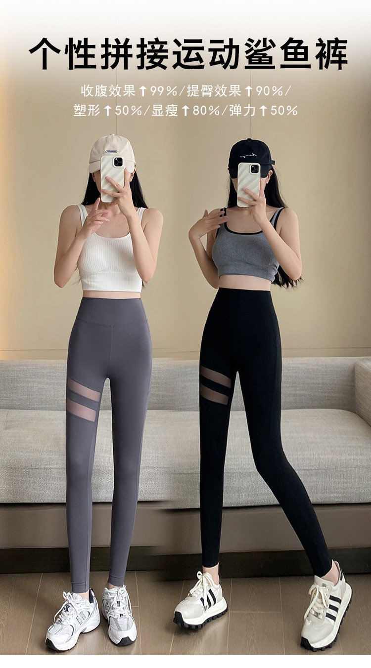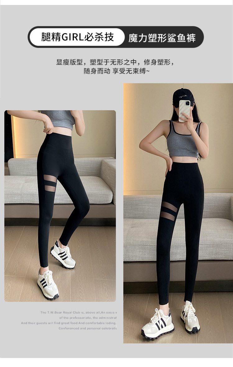 【提臀芭比裤!秒变细腰蜜桃臀】新款个性镂空瑜伽鲨鱼裤,显瘦10斤,穿上就是“小腰精”,鲨鱼裤皮打底裤,亲肤舒适骑行裤+健身+休闲,夏季薄款可外穿黑色高腰大码