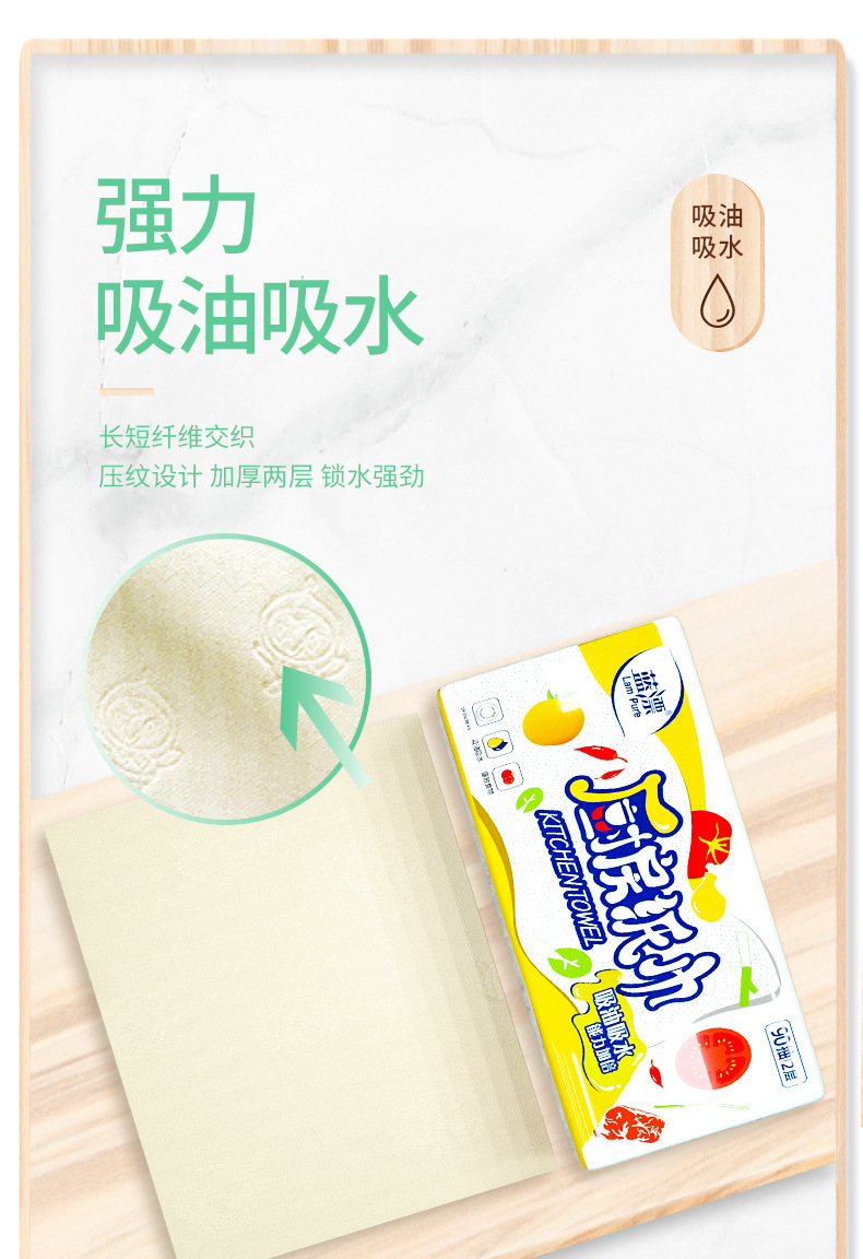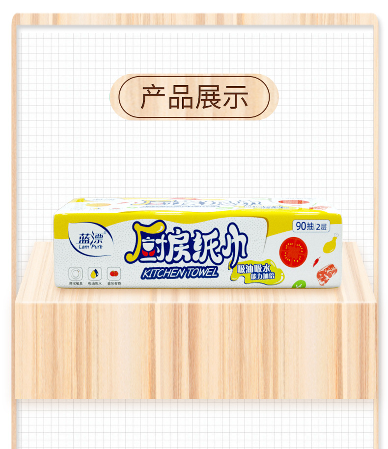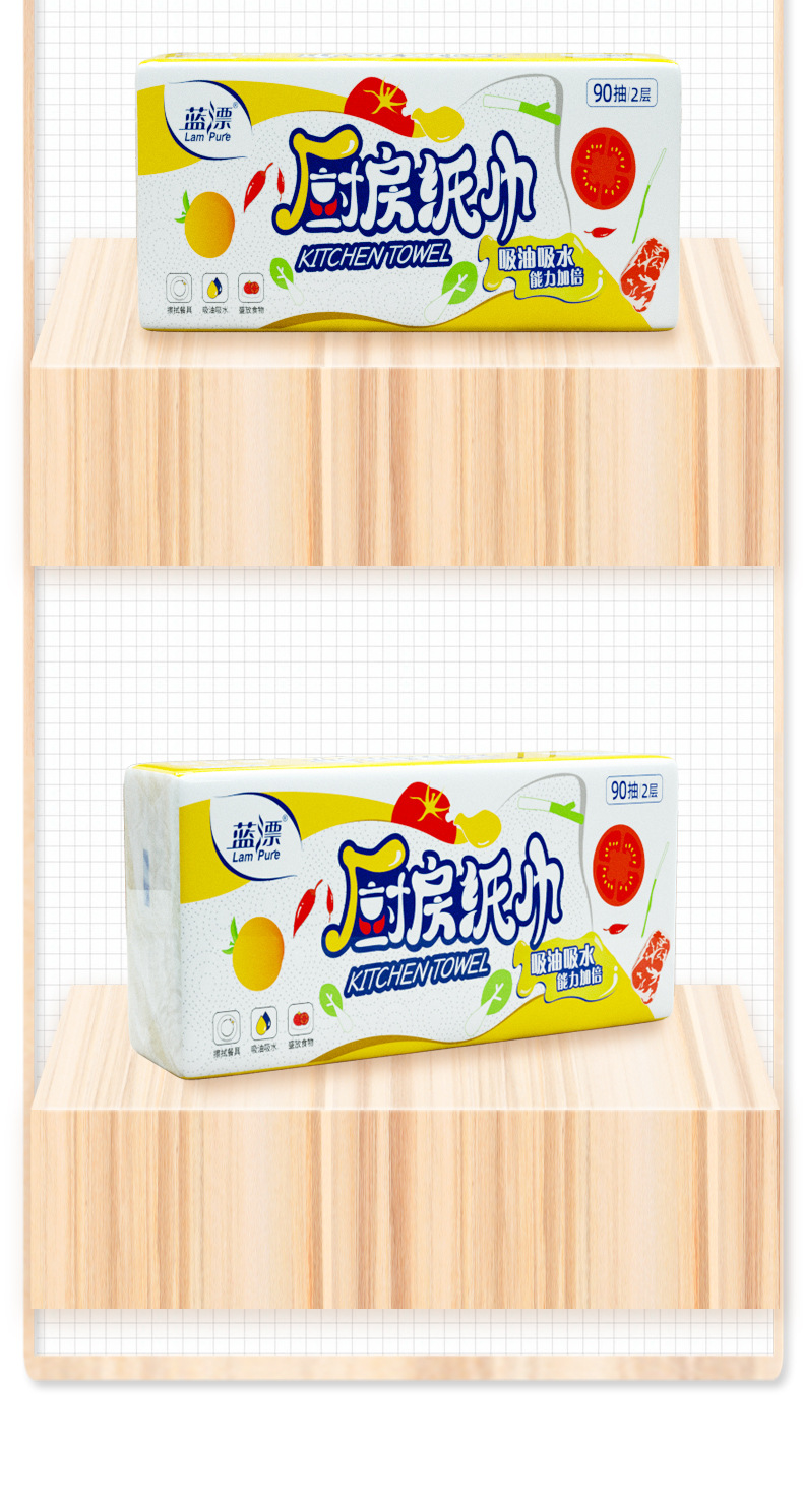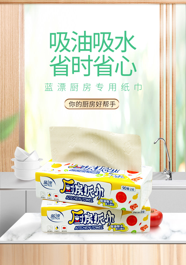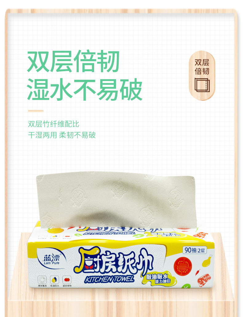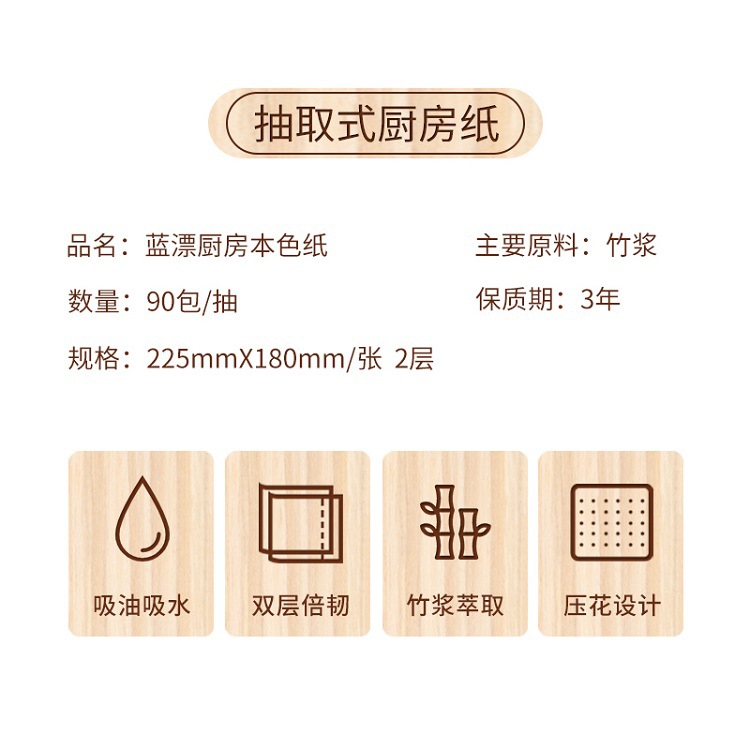 「10包装!单包90张」蓝漂竹浆本色厨房用品吸油纸抽式纸吸水加厚双层90抽清洁工具