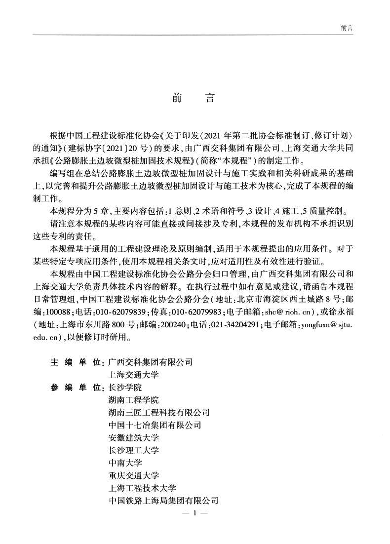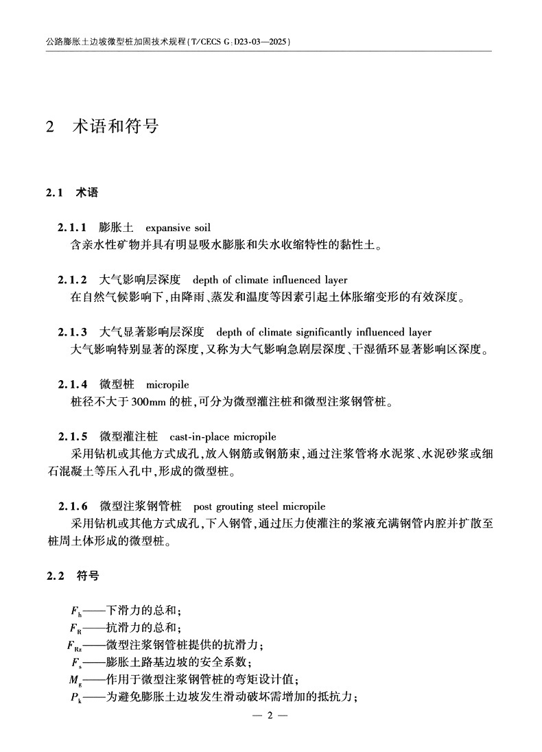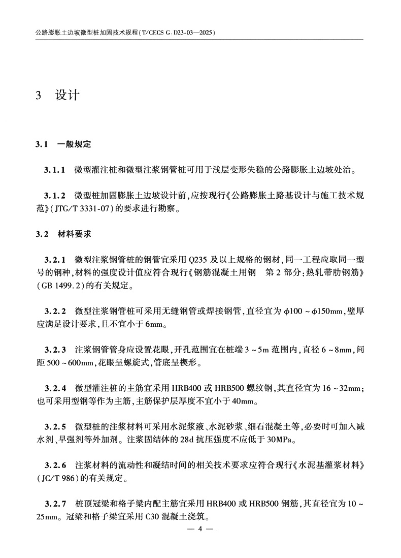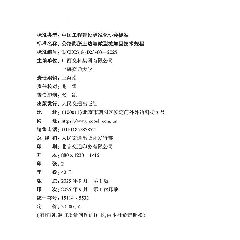 书名:公路膨胀土边坡微型桩加固技术规程(T/CECS G:D23-03—2025)
